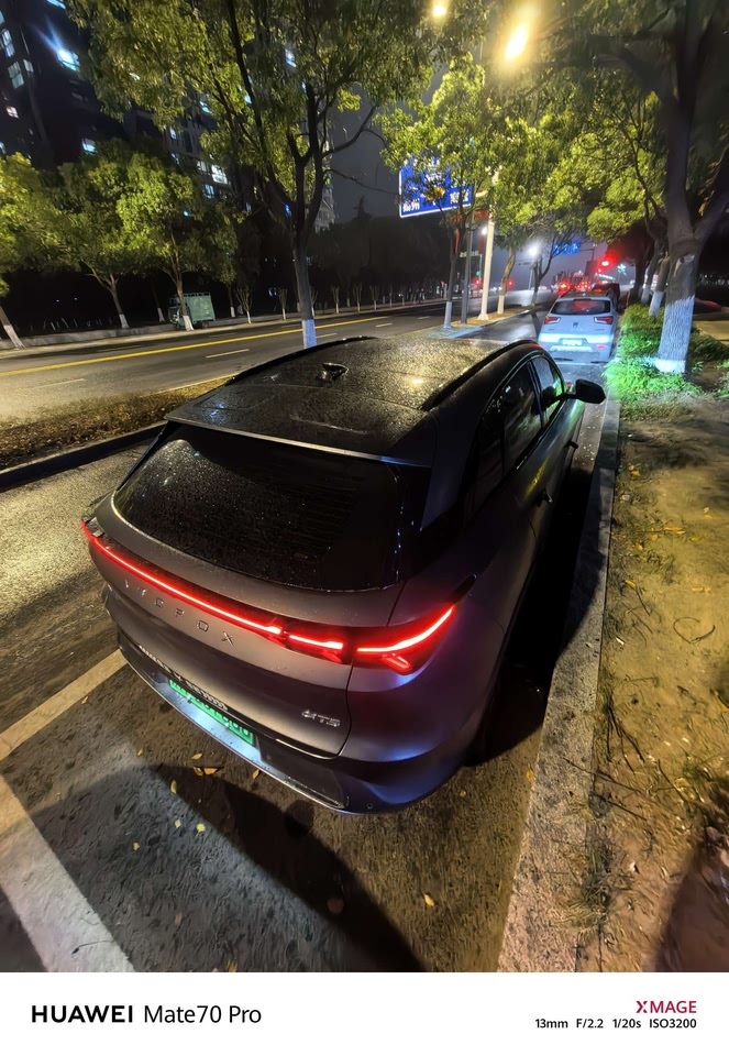 昨天下午加班到5点多,肚子饿得不行,又不知道吃什么,我随口对"小狐狸"说:"帮我推荐附近的小吃街。"它立刻调用AI大模型,结合实时路况和用户评价,给我推荐了南京中医药大学门口的小吃街。导航地图上清晰标记着路线和预计到达时间,HUD抬头显示在夜色中也看得一清二楚,不用低头就能掌握路况信息。 一路上风很大,夕阳西下,天已经黑了。虽然风大树叶被吹得满地都是,但坐在车里,我几乎感觉不到外面的狂风。极狐阿尔法T5的隔音效果非常好,关上车窗,外面的风声几乎被隔绝,车内安静得让我可以专心享受音乐。 这段路并不平坦,有爬坡也有下坡。我开启了运动模式,极狐阿尔法T5的表现让我很满意,动力输出平稳而强劲,操控精准,即使在夜间也能给我十足的信心。 到了南京医科大门口,我把车停在路边。海岩灰的车身在夜色中显得格外低调,却又不失高级感。轮毂的设计在夜间灯光下熠熠生辉,和周围的环境完美融合,一点也不惹眼,却又恰到好处。 最让我惊喜的是,停下车后查看行程数据,才发现这段路程只有2.5公里,平均电耗仅15.5kWh/100km,优于49%的αT5车友。这样的表现让我对极狐阿尔法T5的节能性能刮目相看。 学生们路过时,都忍不住多看了一眼。极狐阿尔法T5的设计确实很吸引人,即使在夜幕下也难掩其魅力。 这次短暂的夜间出行,极狐阿尔法T5用它的智能导航、出色隔音、强劲动力和高颜值,给我留下了深刻的印象。它不仅是一辆车,更像是一位可靠的伙伴,陪我在夜色中寻找美食,享受宁静。