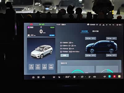 为15.6英寸悬浮式 ,分辨率1080P,显示清晰细腻、色彩饱满 ,且在强光下无反光困扰。它集成了众多车辆信息与功能: 车辆状态显示:在左上角显示时速、挡位、驾驶模式、续航里程等常规仪表信息 。还展示胎压、温度等轮胎状态数据 ,以及车门锁、充电口等部件状态。 行驶数据记录:呈现本次行驶和累计行驶里程,自上次充电后的行驶里程、时长、平均车速、平均电耗等数据 。 车辆设置功能:涵盖内部灯光、外部灯光、车门、车窗等基础设置 ;具备湿滑路面、极致节能等场景模式 ;可对牵引模式、ESP、陡坡缓降、AUTOHOLD等辅助驾驶功能进行开关设置 。 娱乐与应用:搭载α - OS车载智能系统,内置高通骁龙8155芯片,性能强劲,运行流畅。支持咪咕快游、车载KTV ,有超1000款无需下载的游戏,还能实现场景模式设定等 。 交互方式:支持触控操作,还具备四区域语音唤醒、语音连续识别功能 ,实现语音控制车辆功能。部分车型中控顶部摄像头还支持拍照、账号人脸登录、疲劳监测、分神提醒等功能 。 此外,中控屏下方设有一排功能按键,可实现返回主页面、进入应用中心、车辆设置、前挡除雾、座椅调节、空调控制、内外循环切换、音量调节、快捷应用设置等功能 。