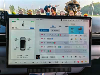 导航信息 精准定位与路径规划:可通过高德地图等导航软件,快速精准定位车辆位置,输入目的地后能规划出最优行驶路线,还能根据实时路况进行智能路线调整。 丰富的路况提示:在导航过程中,遇到路口或复杂路况时,界面会放大显示,清晰展示路口的车道分布、转向指示等信息,还会提前提示前方路况信息,如拥堵、施工等。 多端同步:可以绑定车机账号,并和手机端的账号同步数据,方便用户在手机端提前规划好路线并发送到车机,上车后直接导航。 异常预警:当胎压出现过高或过低等异常情况时,系统会发出警报提示,提醒车主及时检查和处理轮胎问题,避免因胎压问题引发安全事故。 电耗显示 实时电耗:能够实时显示车辆当前的电耗情况,帮助驾驶者了解车辆在不同驾驶状态下的电能消耗,以便调整驾驶习惯,实现节能驾驶。 历史统计:可查看本次行程以及累计行程的电耗数据,让车主对车辆的能耗情况有更全面的了解,也有助于评估车辆的续航能力和使用成本。 天气显示 实时天气信息:可自动定位车辆所在位置,显示当地实时的天气状况,包括温度、湿度、风力、天气类型等信息,方便车主提前做好出行准备。 天气预报:提供未来一段时间的天气预报,让车主能够根据天气变化合理安排行程。 音乐功能 多种音乐来源:支持收音机、蓝牙音乐、QQ音乐等多种音乐播放源,满足车主不同的音乐需求。 便捷操作:在中控屏上可直接进行播放、暂停、切换歌曲、调节音量等操作,界面简洁,操作方便。 歌词显示:播放音乐时,能在中控屏上显示歌曲的歌词,增加驾驶乐趣。 空调控制 温度调节:可通过中控屏上的温度调节按钮,精确调节车内温度,满足不同乘客的舒适需求。 模式切换:支持多种空调模式切换,如自动模式、手动模式、内循环、外循环等,还能单独控制空调出风口的风向和风量。