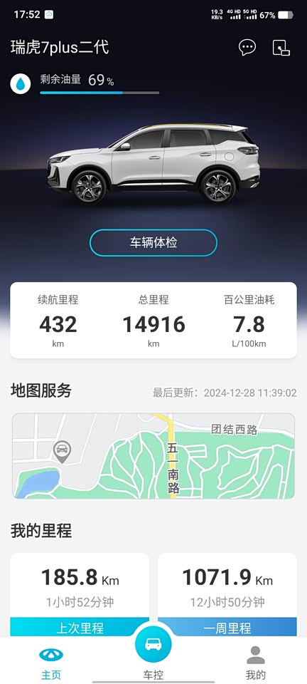 瑞虎7plus油耗方面,综合平均油耗在7个左右,城区平均8-9个,快速路、国道、高速平均5.5-7,对于经常走国省道往返县区乡镇的路况表现非常友好。续航里程方面,加满油续航800km,实际开基本上是六七百公里,与设定的计算方式有关。