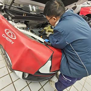 把瑞虎7 PLUS停在4S店售后区时,服务顾问已经拿着接车三件套在等了。 他先在方向盘上套松紧刚好,握上去不会打滑;再把座椅套从头部套到椅面,边缘的松紧带牢牢卡住座椅缝隙,连靠背侧面的调节按钮都留了开口;最后铺上脚垫,边角和车内地板的弧度严丝合缝。“这样保养时工具和油污就蹭不到内饰了。”他边弄边说。 车子被开到保养工位,两个师傅推着举升机的托臂过来。“您看这底盘上的标记,是专门的举升点。 "穿黑色工装的师傅指着车底的凹槽说,把四个托臂对准位置后,按下按钮,车身缓缓升起,直到轮胎离地半米才停下。他绕着车走了一黑,随下来检杏每个杆壁的帖合度,确认稳妥后才开始下一步。 CHERY 抽出旧滤芯时,我凑近一看,果然上面沾着不少绒毛和黑色的小颗粒,边缘都有点发黑了。新滤芯拿出来时,他先对着光看了看滤网的密度,“这是带活性炭的,除了过滤灰尘,还能吸附点异味”。
