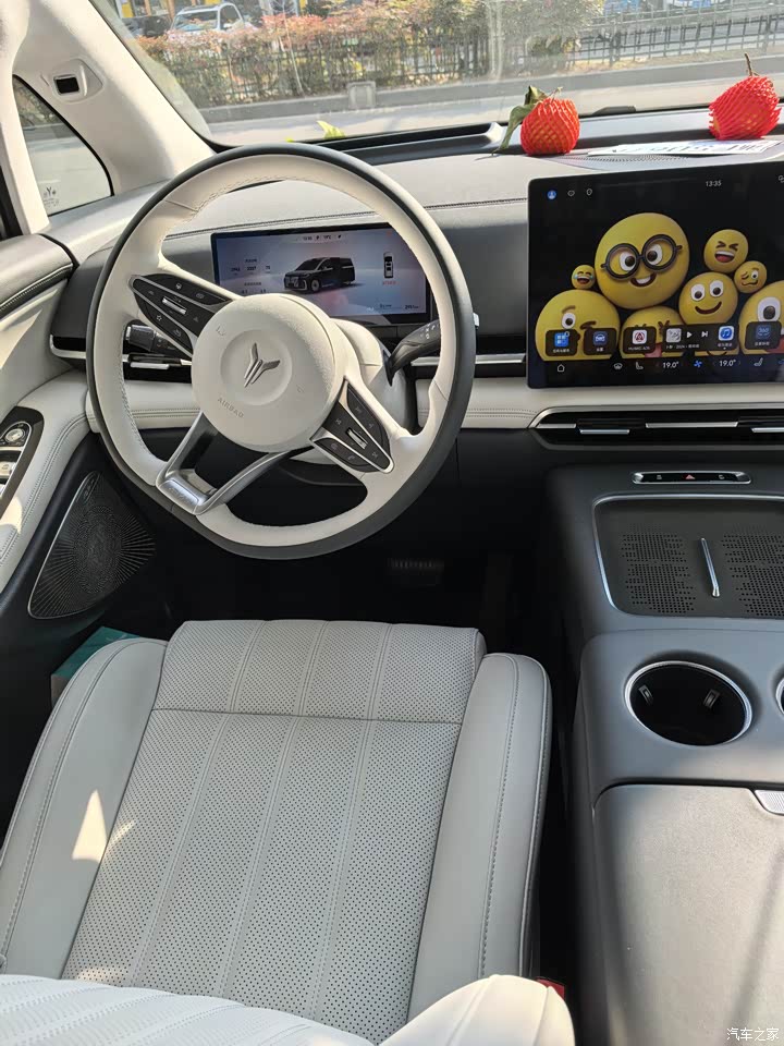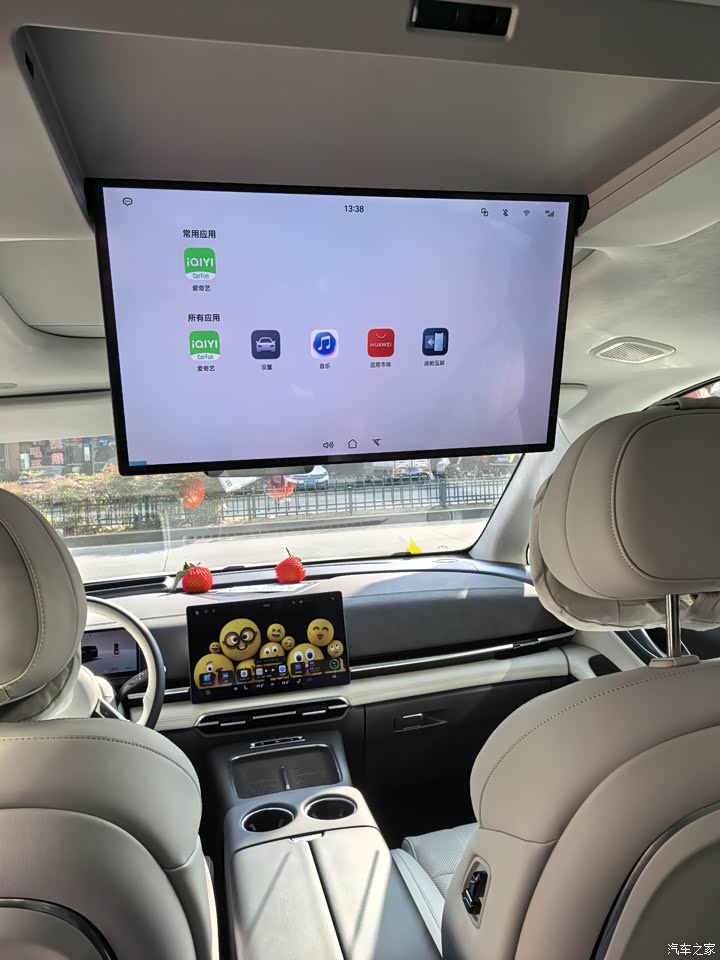 前排两个屏幕,中间一个吸顶屏,中间两个座椅各有一个小屏幕用来控制座椅调整已及吸顶屏,语音助手也很好用,鸿蒙座舱确实很智能化。