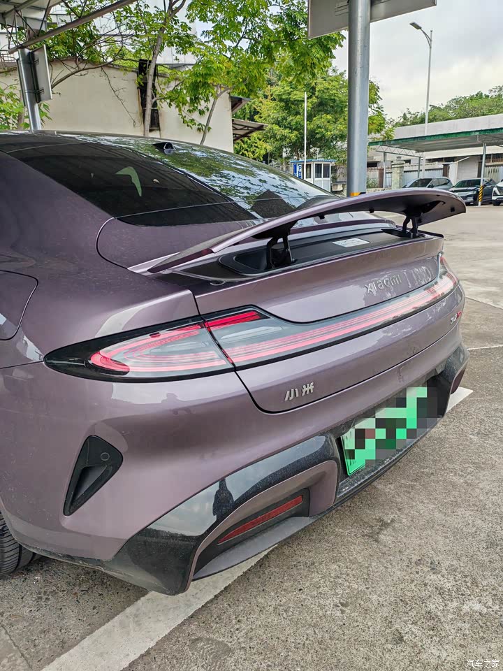 我最爱的紫色车漆,虽然要加七千元钱,但这都是用户自己选择,我确实喜欢我就加了,如果不需要的用户是有很多免费车漆配色的。我本身就很喜欢轿车,小米su7做工和设计非常精致,真的是每一个细节都做到我的心窝里面了,整体设计我觉得应该是一种流线型、水滴型设计,整体非常低趴,而且宽体感很强,特别是顶配的大尾翼(非顶配可选装)真的是巨帅,我确实不太懂什么提供下压多少公斤,但是我看得明白他很帅呀。顶配的梅花轮毂真的是惊艳到我,作为一个女生,我真的觉得小米su7是雷总为我量身定做的,大大的车灯,像青蛙眼一样,明亮而突出。现在开始期待YU7实车的,以前我真的一点也不喜欢suv,但是现在我竟然对yu7有一点小小的期待。我们拭目以待吧!
