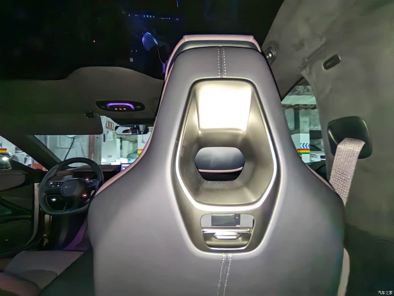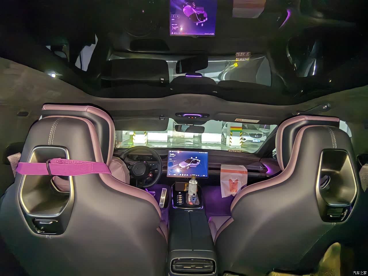 内饰是我必须要说的,真的是照着我的心头好设计的,紫色的氛围灯,紫色的座椅,紫色的安全带,真的仪式感满满。我特别喜欢雷总的细节狂魔性格,你能想到后排的把手都是一根皮带吗?纤细的设计,真皮手感,这真的不是女士专用车吗?车顶的大玻璃顶,你能想象夏天,我把车开到山上,放倒前排座椅,躺在车里,开着空调,望着星空是什么感觉吗?那一刻我真是心都飞到九霄云外去了,别提有多惬意了。