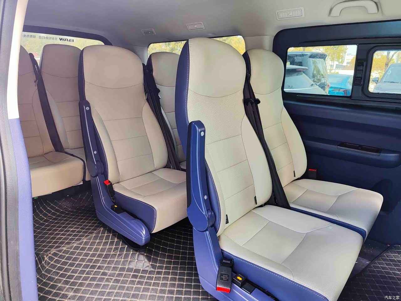 作为一款9座车型,车内空间非常宽敞,座椅布局灵活多变。这是我们客运人比较喜欢的车型,排与排的空间都还不错,即便是满载的情况下,也不会感到拥挤,每位乘客都能享受到足够的活动空间。此外,后备箱可以轻松容纳多个行李箱和其他随身物品。