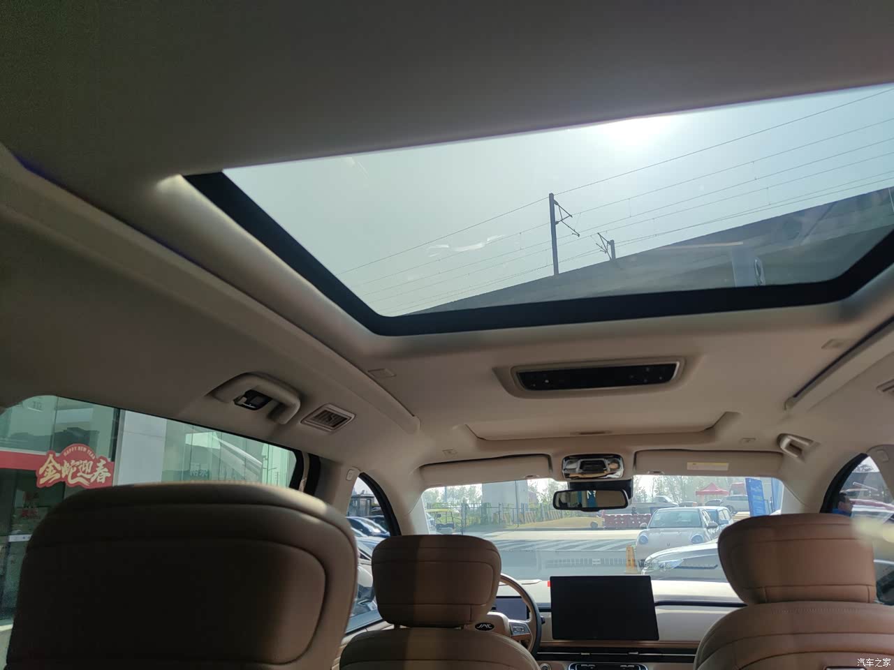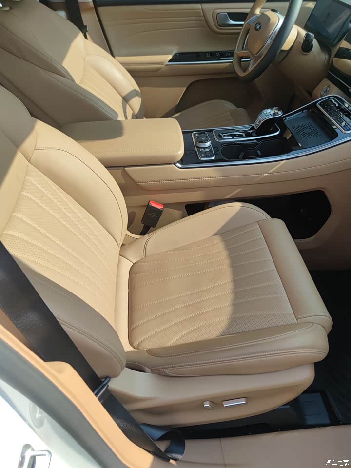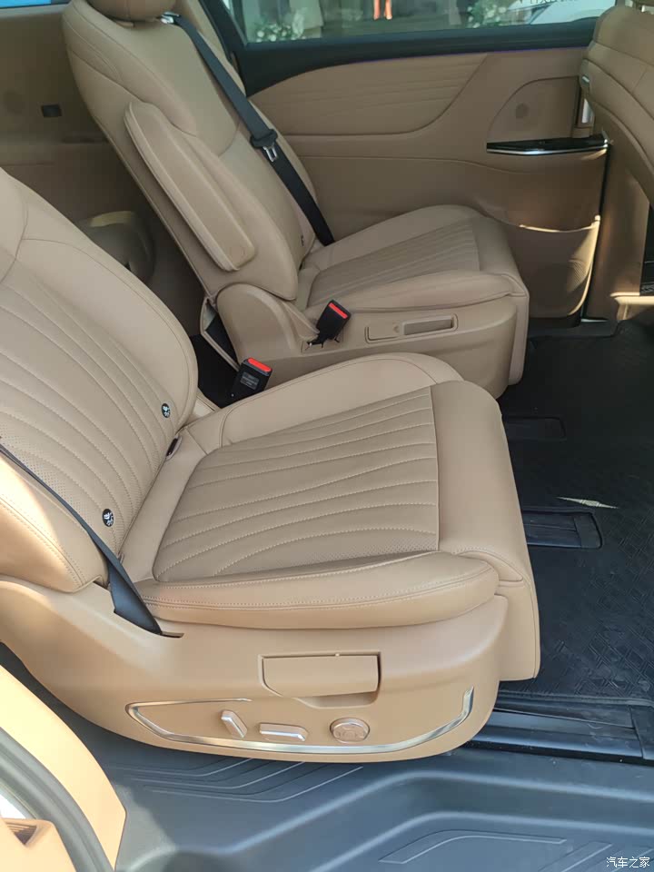 内饰的话,其实也还好,虽然简单,但是该有的还是有,两个大屏显得就很大气,还有很多细节方面也做得不错,比如USB插口多,还有三角插电孔,小桌板,在车上办公,吃点东西,充电脑,手机店那些还是很方便的。但是就是门框两边的材质实属有点差,这么豪华的配置,这些方面把材质再升级一下岂不更完美?