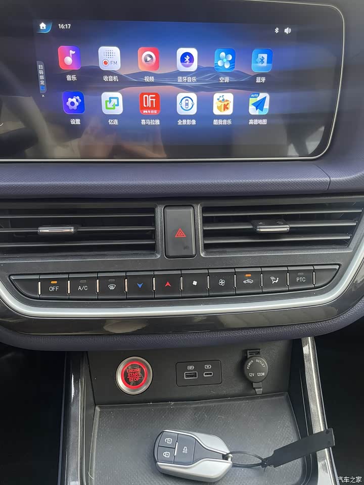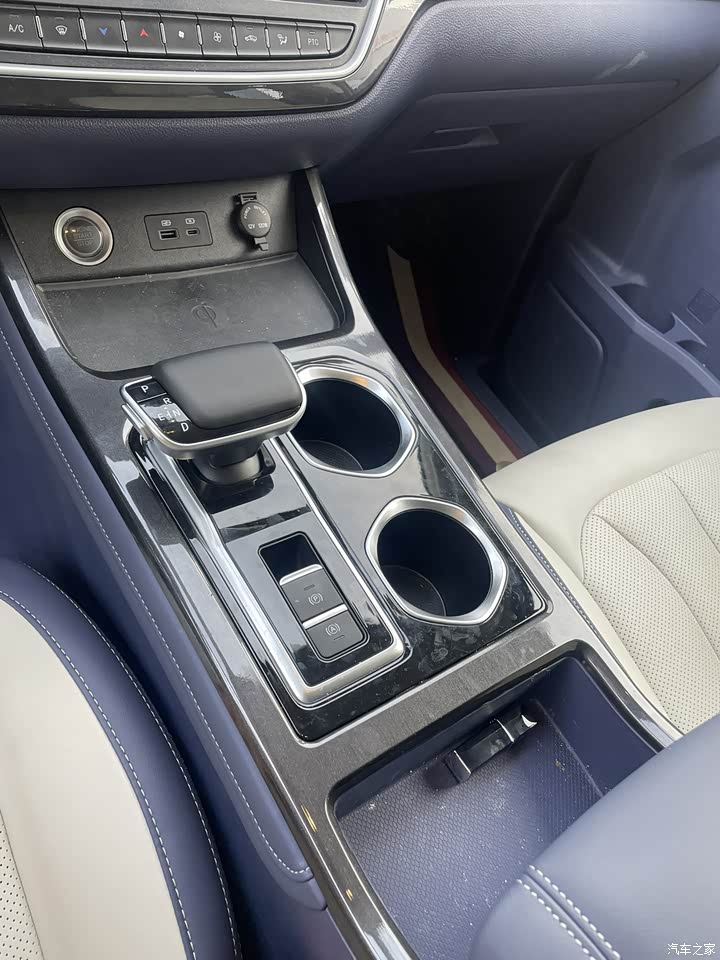 蓝色和米白色相间的内饰设计,比起单调的一种颜色还是亮眼了很多,不会觉得枯燥无味。整个内饰里面比较喜欢的,就是它是比较好清洁的亮面操作台,质感满满,握杆操控性很好,还能无线充电。上次我把咖啡不小心弄洒了,用湿抹布擦个一两遍就行,也不会有污渍残留。