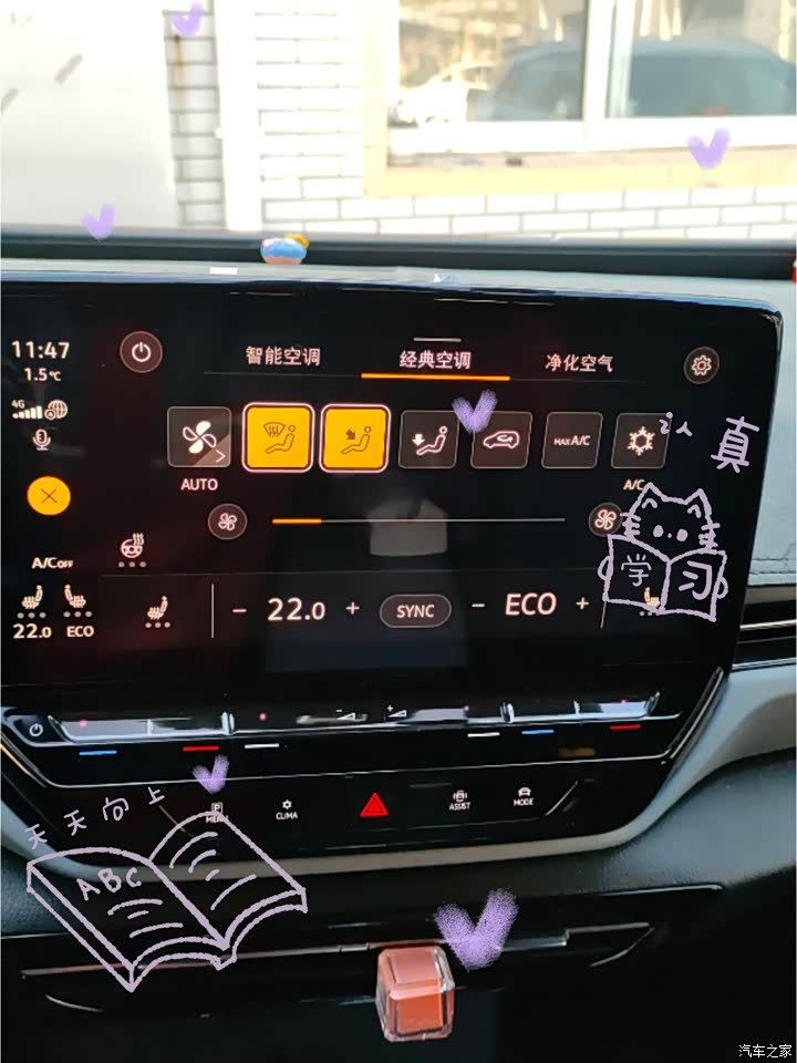上汽大众ID4x春秋空调秘籍。春秋这两个季节的气温就像坐过山车一样,一天之内能让你体验四季变化,稍不注意,开空调的方式就不对,不仅不舒服 还费电,简直就是给自己找罪受。 当春天气温升高,太阳有点儿太热情,很多人一上车就把空调调到最低,打开ac制冷,这样不仅耗电快,还让身子一下子适应不了温差,说不定下车还容易感冒。 正确的做法是先打开窗户通风几分钟,让车内的热气散一散,空调设定在22~26度左右,这个温度不会太冷,又让你感受到清爽,风量尽量调小一点。如果遇到下雨的天气也不要担心 把风向调整向风挡玻璃,让风吹走玻璃上的雾气,保持视野的清晰。 秋季早晚温差相对来说比较大。 早上出门儿气温还是有时候低。上车后建议也先开窗通通风,让车内也有新鲜的空气进来。如果在室外感觉有点儿热,可以把空调设定为22~24度,关闭空调,打开车外的循环,这样自然风就可以吹到车里,既舒服又节能。到了晚上气温下降,我们可以把座椅加热和方向盘加热打开,这样整个人都会暖和很多。 春秋两季开上汽那种ID4的车友只要掌握了这些方法,就能轻松应对多变的天气,享受舒服又节能的出行。
