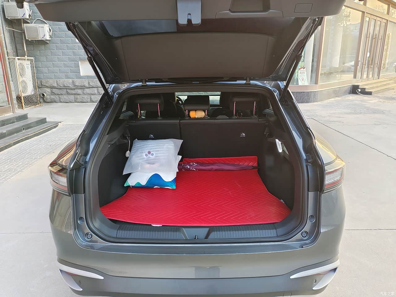 唠一唠上汽大众ID4x的后备箱空间,在常规状态下,后备箱空间在484L左右。要是把后排座椅放倒,那就更不得了啦,容积直接飙升到1546升!装个东西非常的方便。买了车子之后,赶上五一小长假,带着家人去海边游玩,后备箱塞了一个大皮箱,两个小皮箱,还有露营装备,满满当当的,本以为装不下 实则低估了上汽大众ID4x的后备箱的大空间。而且后备箱下隔板下边儿还有两个不小的储物口。里面可以放一些随车工具啊,灭火器或者是纸抽之类的也是非常方便。 有利也有弊,ID4x后排座椅放倒后 后排座椅和后备箱不是平行的,这就非常让我头疼,跑长途累了的话,想在车里边儿休息一会儿,特别不舒服。无意间刷到了ID4x后备箱魔盒,本着试试的心态,购买了之后安装上车真的是特别完美,后排座椅放倒后与后备箱是平行的。如果开车久了之后有点累,完全可以在车里小气一会儿,这样我们开车才会有精神。