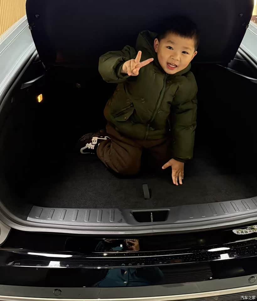 车辆尺寸摆在那里,空间蛮大的。我中等身高,坐副驾可以伸直腿。后排腿部三拳到两拳左右的富余,头部因为有全景天幕空间也非常不错。 后排座椅还是马自达的传统诟病,座垫长度略显不足,角度稍大,靠背比较直。长途来说,后排乘客比较容易疲劳😪。但是得益于全新的电车架构,地台是纯平的。后排居中乘客再也不用坐小板凳啦🤣。 掀背车型的后备箱空间一般都不会让人失望,目测可以放三个大号行李箱。并且后备箱开口特别大,很方便。我崽崽给大家测试了。