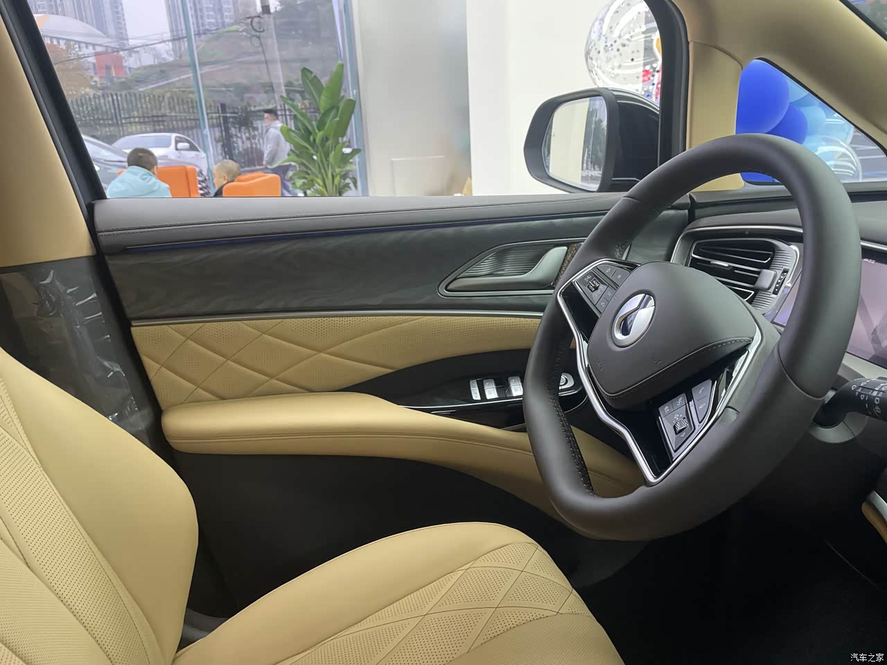 首先是整体的布局,感觉看的的内饰都是软包,而且更多的缝线很细腻,当然我看了这个车子之后我很喜欢中控区域的设计,超大的显示屏还支持语音的控制,仪表屏会显示胎压以及能源消耗,内饰中有非常多的软性包裹,质地是很柔软的,座椅的承托感也很好。