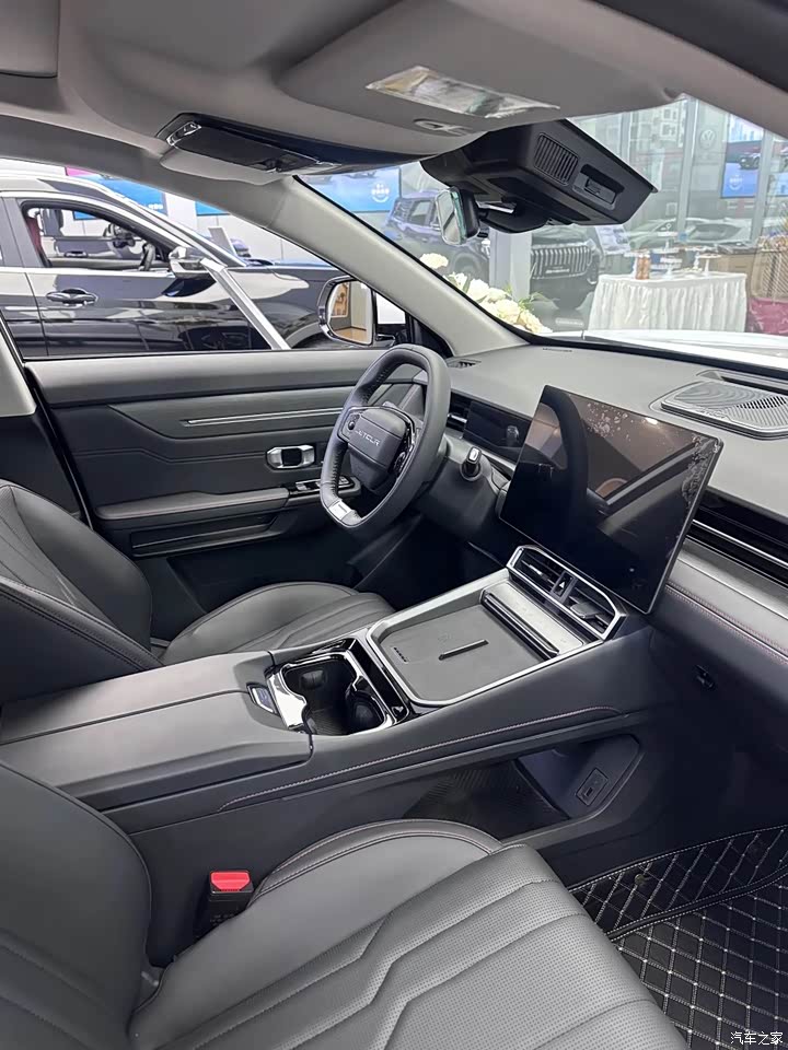 内饰相当不错了,设计方面没有特别突兀的东西,但是整体感觉很规整大气,尤其是前面的大大的屏幕,让人觉得很有高档感。