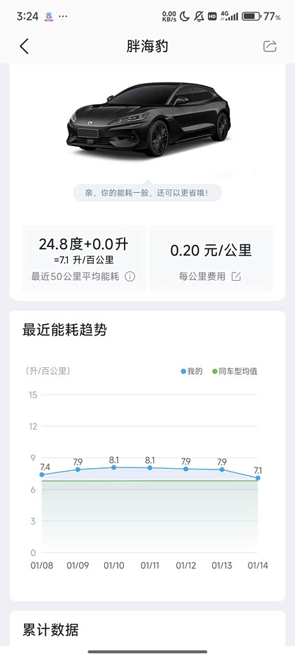 混动车型其实不用管油的,只要看电的就行,冬天像我老婆一样上车直接空调全开,油门踩的也狠,那会有点电工纳智捷,估计最高能到30,纯电也就100出头,刚提车那会不开空调,也不叫温柔的开电耗能到17-18,基本接近200的官方纯电续航,不过我有车位有充电桩,电耗续航其实都不太在意,接近2.8吨的车重和三台电机注定了这不会是一台低能耗的车,但是控制到目前的水平我觉得能接受