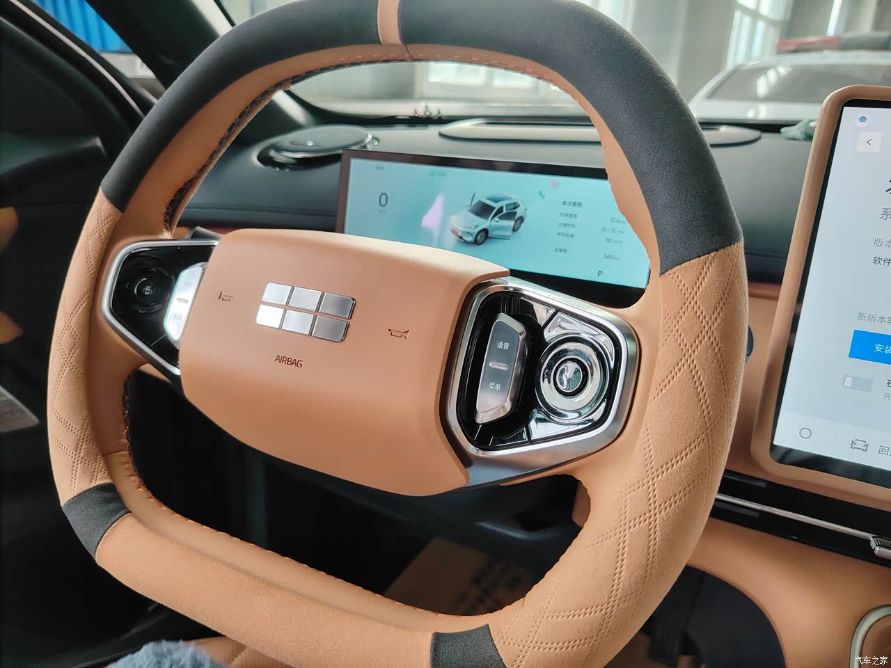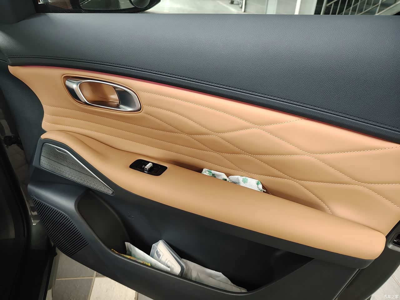 当时媳妇想要一个白色的内饰,但是店内没有车,比较着急,不想等,然后最后内饰就选择了棕色