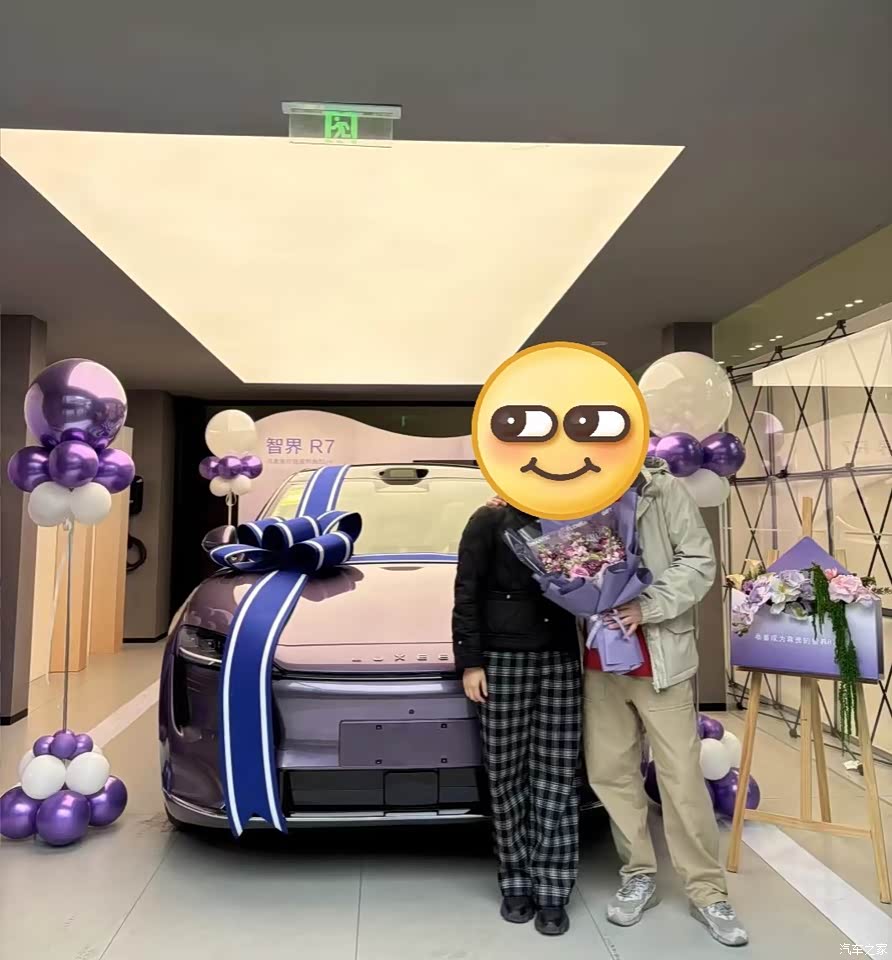 家里有辆别克君越,因为夫妻两人上班地点不一致,需要增购一辆新车,因为家里有一辆油车,一开始就把方向明确在了纯电,在汽车之家前后了解了比亚迪、极氪、阿维塔等车型,后面看到鸿蒙智行智界R7纯电,一眼就被他的紫色外观吸引了,国庆节后第一时间去了成都合景魔方店试驾,直接被他优秀的空间外观和智驾吸引,当场下定购买,现在开了一个多月,感觉自己选对了。