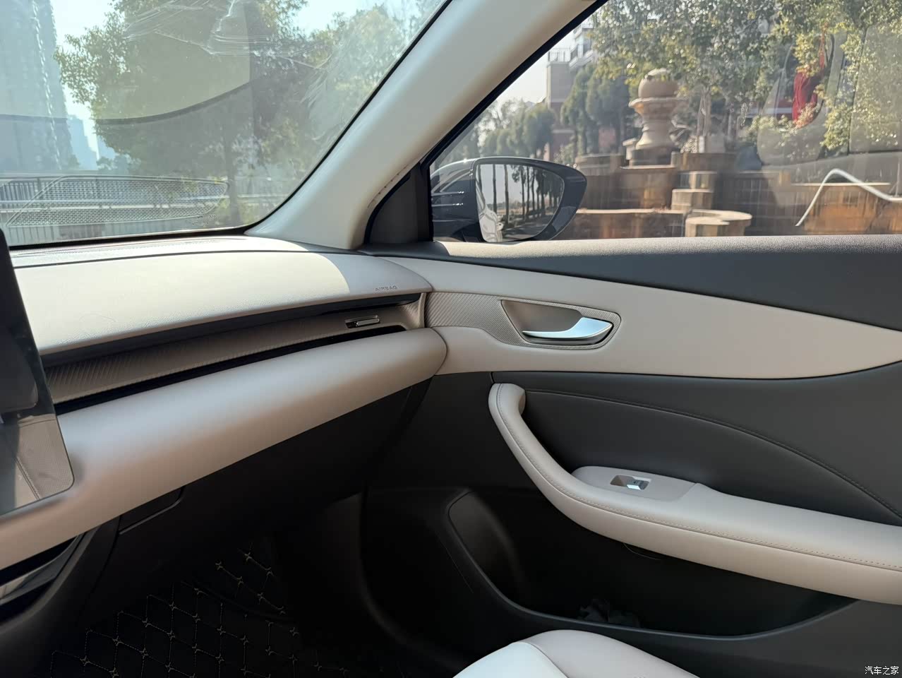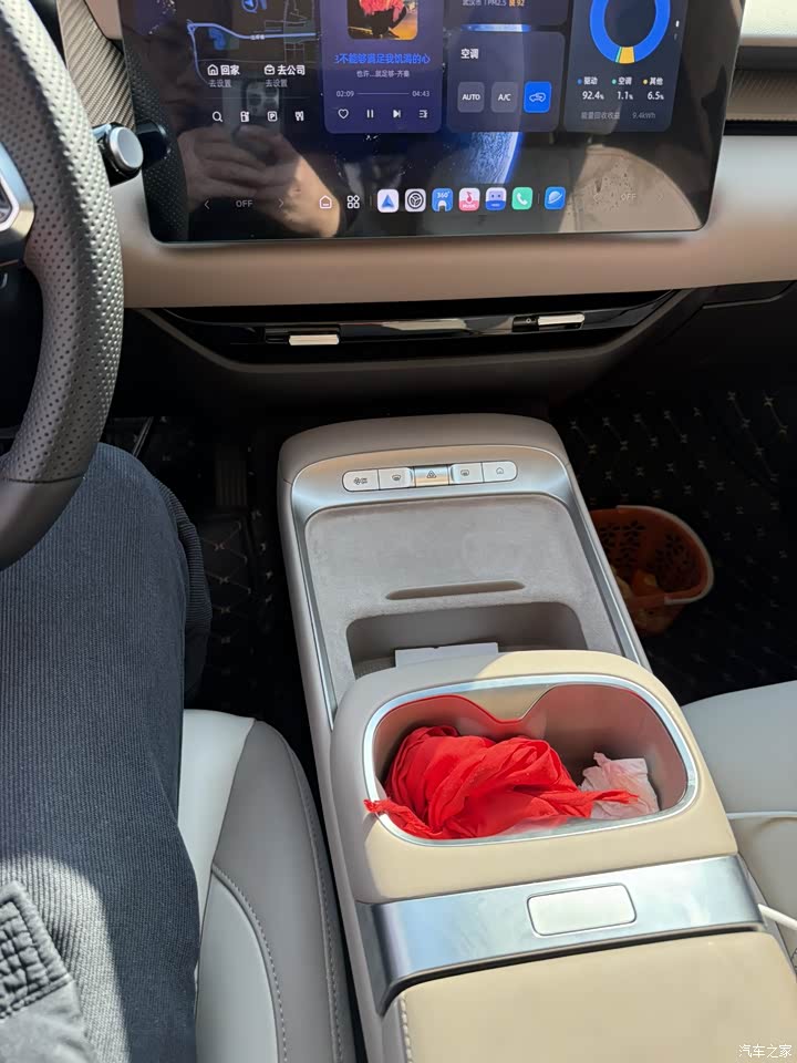米色内饰比较亮眼,就是不知道经不经脏。已经买了马鞍垫。空调出风口设计的有点奇怪。小储物盒都有,就是这个中配竟然没有无线充电。