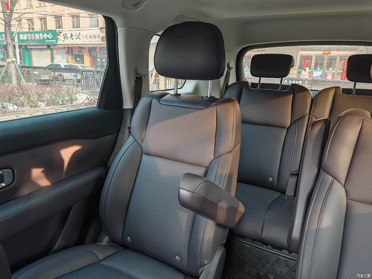 内饰颜色比较稳重,全是真皮座椅,质量不错。