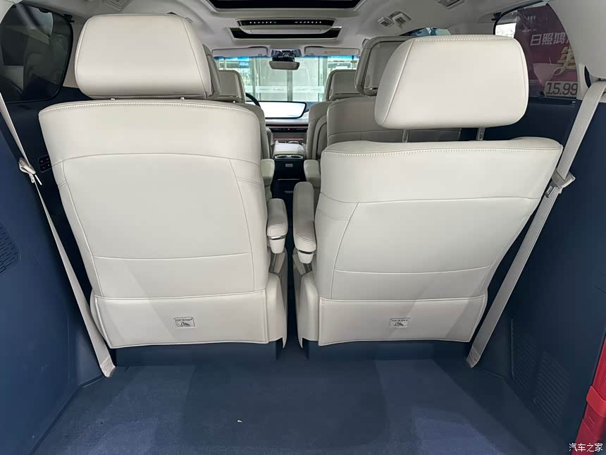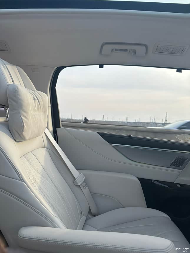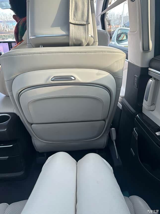 空间方面真的没得说,整体宽敞到超乎想象。第二排座椅堪称“头等舱”,腿部、头部空间都特别宽裕,不管是葛优瘫还是跷二郎腿,都轻松自在。而且第二排到第三排的过道也很宽敞,老人小孩在车内走动完全不费劲。后排是我媳妇拍的,身高160,腿部将近三泉的距离了
