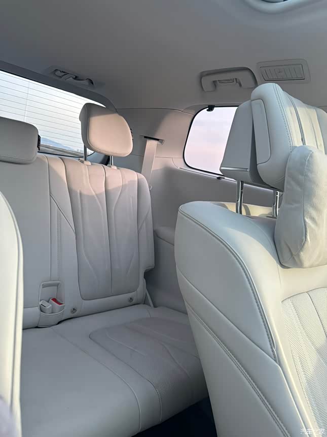 6座版第三排独立座椅还支持通风/加热,7座版第三排一体式座椅可放倒,灵活又方便。白色调加上大面积Nappa真皮材质,触感超棒,整个内饰温馨又豪华。