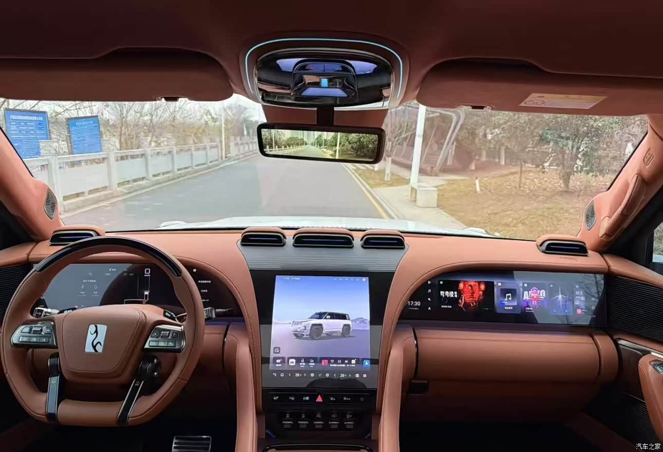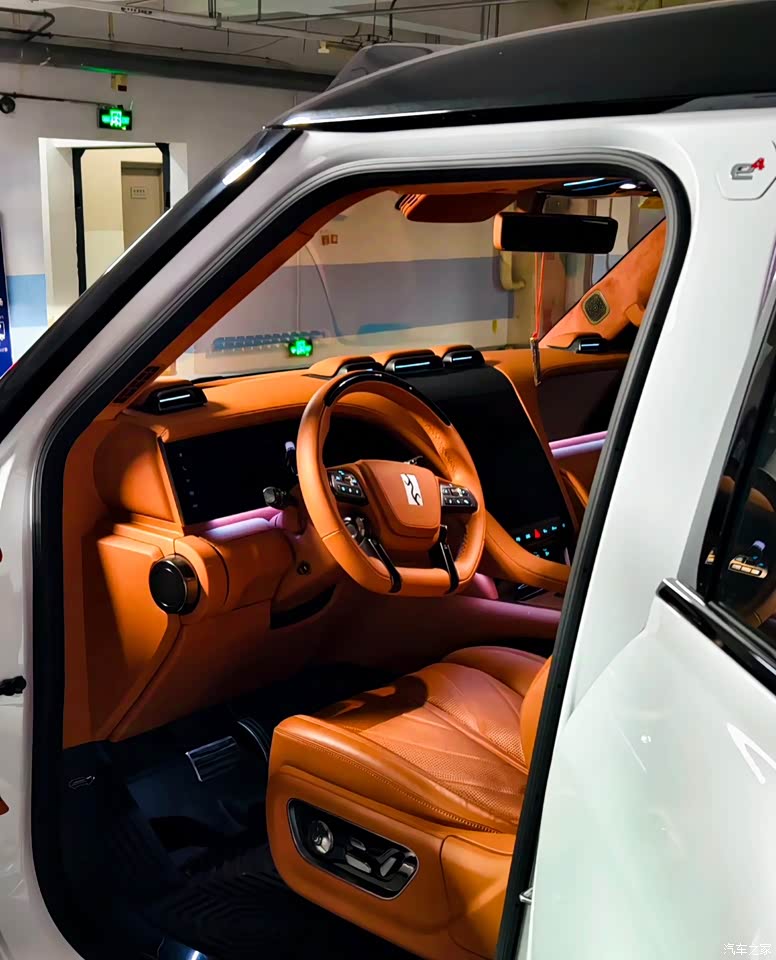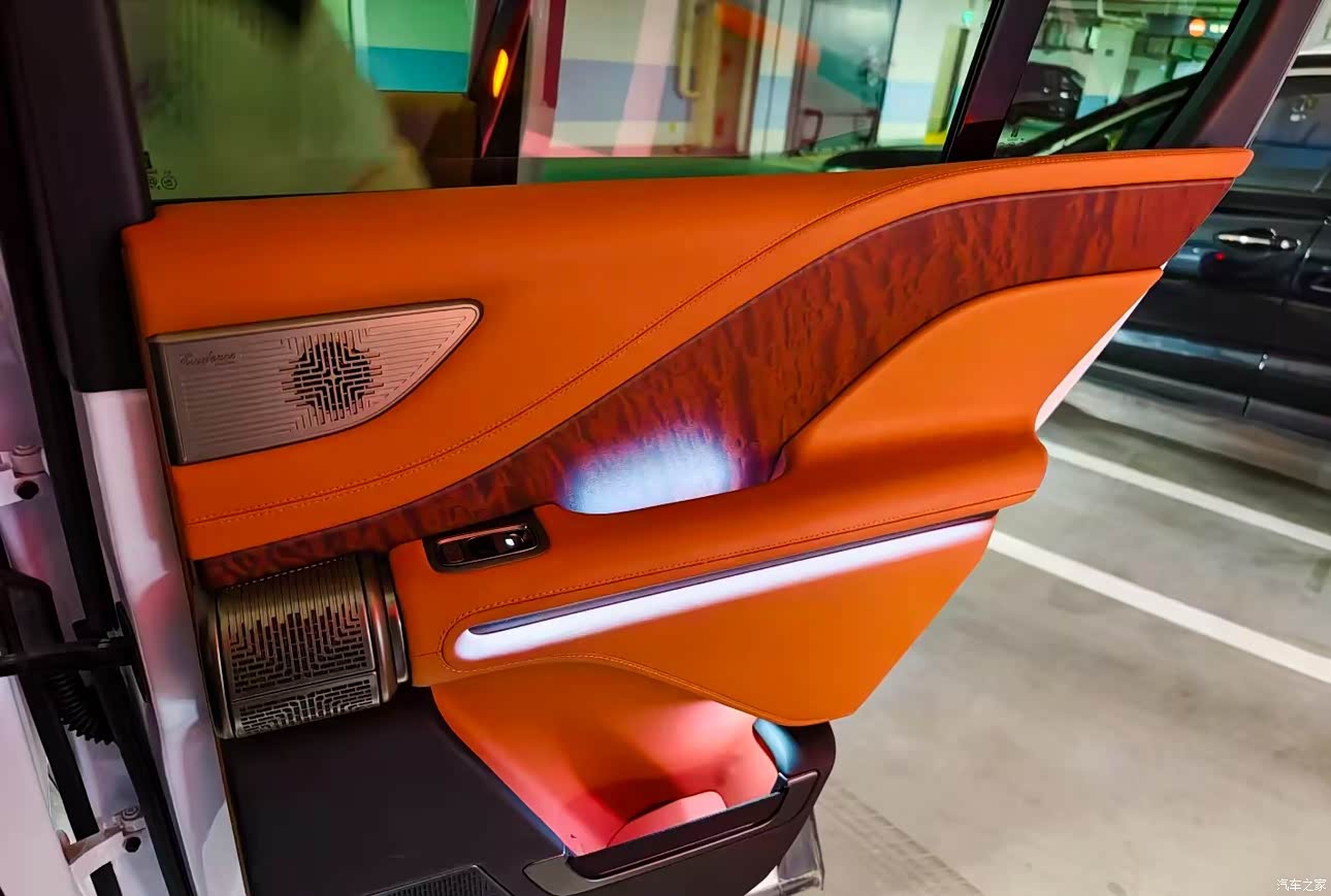 内饰我选了经典的橙色,皮质触感非常的细腻,不愧是是百万家豪车,来自非洲的沙比利木,原木旋切,真的感觉整个内饰的档次都提高的很多,星河曲面屏,尺寸很大,操作也很流畅,内饰营造了很温馨舒适的驾乘环境