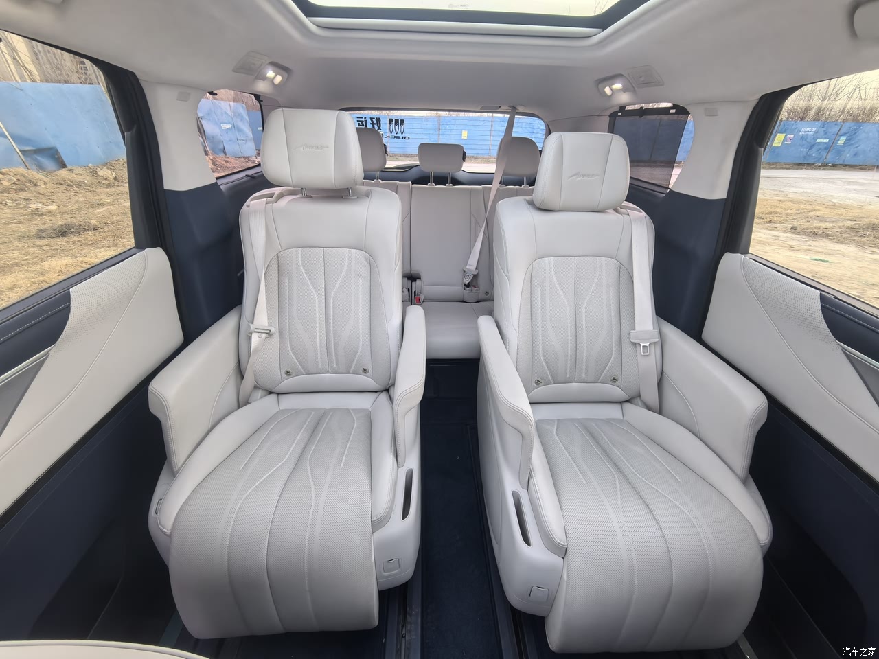 车内空间堪称奢享天地。宽敞的座舱布局合理,真皮座椅柔软舒适且包裹性极佳,长途旅行也不会感到丝毫疲惫。二排独立航空座椅更是将舒适演绎到极致,电动调节、加热、通风、按摩等功能一应俱全,让乘客在车内就能享受头等舱般的待遇,无论是商务洽谈还是家庭出游,都能营造出静谧、舒适的氛围!
