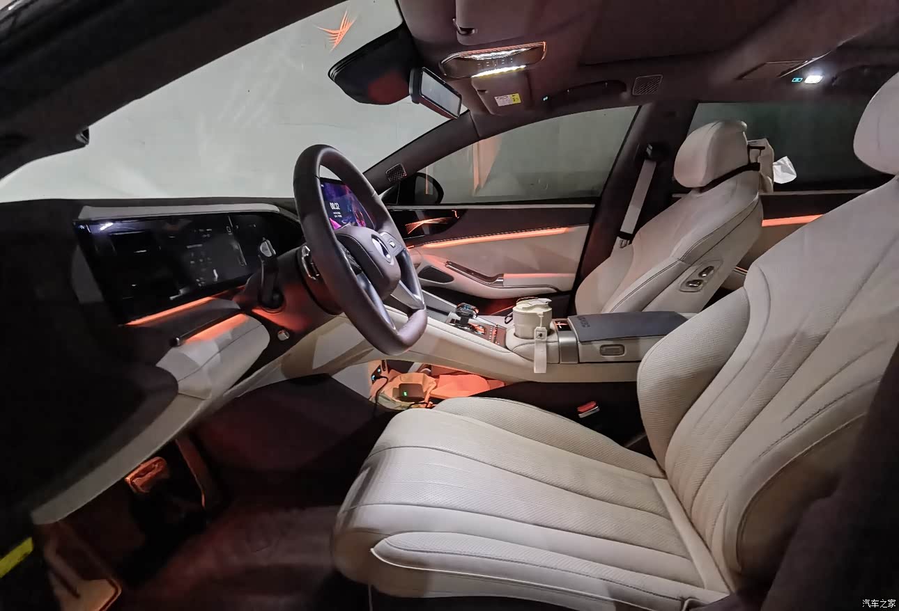 驾驶空间非常宽敞,试驾过某米的驾驶座舱,比某米宽敞很多。我1米72座椅调成我的习惯驾驶位置比较躺着开车那种,头部空间有个一拳到两拳的感觉。可能车身比较低,天空的视线比平常的车视线要矮不少,如果红绿灯比较近,需要身材往前或者低下头看一下红绿灯。