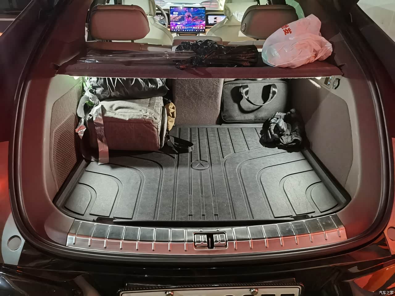不满意的基本都在车内 杯架挡档把的这个问题说大不大,说小不小,确实会影响到挂档的操作,需要换个矮点的杯子影响会小一些。 比亚迪传统设计,这个门板上的装饰板能不能选个好看的图案在上面,真的看着特别的廉价老气。要是max版能选装电子后视镜我绝对会因为这个饰板图案而选择电子后视镜。太丑了,拍板的人是啥审美呀,你放个DENZA腾势的英文名在这里也可以呀,或者像车上音响用点好看的中国元素也不错呀。 后备箱作为一个D级车真的不大,别说是作为一个旅行车了。好在可以放倒两边的座椅能扩展出来一部分空间,但后面e3方两个电机在下面而且还带后轮转向空间小点还是能自适应的。 后排触控屏下方的插座角度有点刁钻,需要趴下才能看到插孔在哪里。在哪里提供一个灯照亮也能好多。 还有电动门,我一个人用车的情况下还是很方便,但这个电动门有个逻辑问题。就是它只有解锁车辆的第一次按微动开关才是自动打开,这个第一次被占用了后面的所有开门都不能用微动打开自动门,每一次我朋友都想优雅的上车,发现按微动没反应就会有很大的失落感,我也要一番吐槽这个鸡肋电动门。希望后续ota能进行优化,只要按微动开关就是自动开关门,拉手也可以进行备有保留。