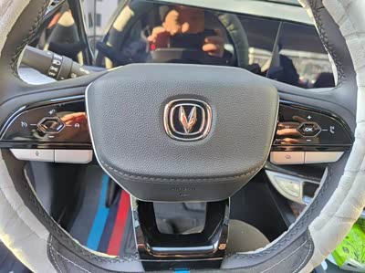 长安逸动Plus的方向盘调节功能,充分考虑到驾驶者的个性化需求,操作简便且实用。 它支持手动上下和前后四向调节。调节前,先找到方向盘下方的调节手柄,这是操作的关键部件。只需轻轻向下拉动调节手柄,就能解锁转向柱锁止机构,让方向盘进入可调节状态。 接下来,你便可以依据自己的驾驶习惯和舒适度,将方向盘调整到理想位置。如果你习惯手臂伸直,让手腕部位正好搭在方向盘最上边边缘,那就可以通过前后调节,找到合适的距离;要是觉得方向盘的高低影响操控,上下调节就能帮你解决,直到找到最舒适、最便于操控的位置。比如,身材高大的驾驶者可能需要将方向盘调高、调远,以获得更宽敞的驾驶空间;而身材娇小的驾驶者则更倾向于将方向盘调低、调近,方便更好地掌控车辆。 调整完成后,千万别忘了向上按压方向盘调节手柄,把方向盘锁定。这样,方向盘的位置就固定下来,不会在驾驶过程中意外移动,确保了驾驶的安全性和稳定性。调节好方向盘后,你会发现它的尺寸适中,采用皮质材质包裹,手感细腻,细节处还加入了红色缝线处理,再加上平底设计,不仅运动感十足,还能让你在驾驶时更加得心应手 ,为你带来更舒适的驾驶体验。