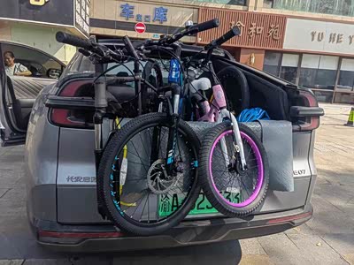后备箱可以同时放一家人的4辆自行车,直接骑在后备箱的门槛上,拿取都很方便,大家都说这个车真是拖自行车的神器。