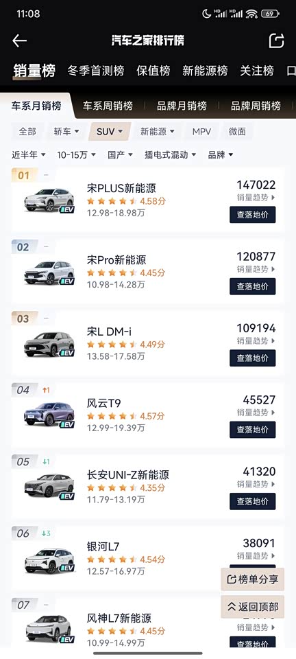 我是对比并试驾了销量靠前的几款主流插混SUV:五菱星光S,长安UNI-Z,比亚迪宋Pro、Plus、L,吉利银河L7后,最终选择了奇瑞风云T9。这几款中T9车身最大,整备质量最重,安全性最高,1.5T动力跟银河L7同处这个价位的第一梯队,360影像、倒车雷达、L2智驾等常用行车辅助功能及舒适性功能都有配备,价格比当下火热的宋家族便宜,整体性价比高。