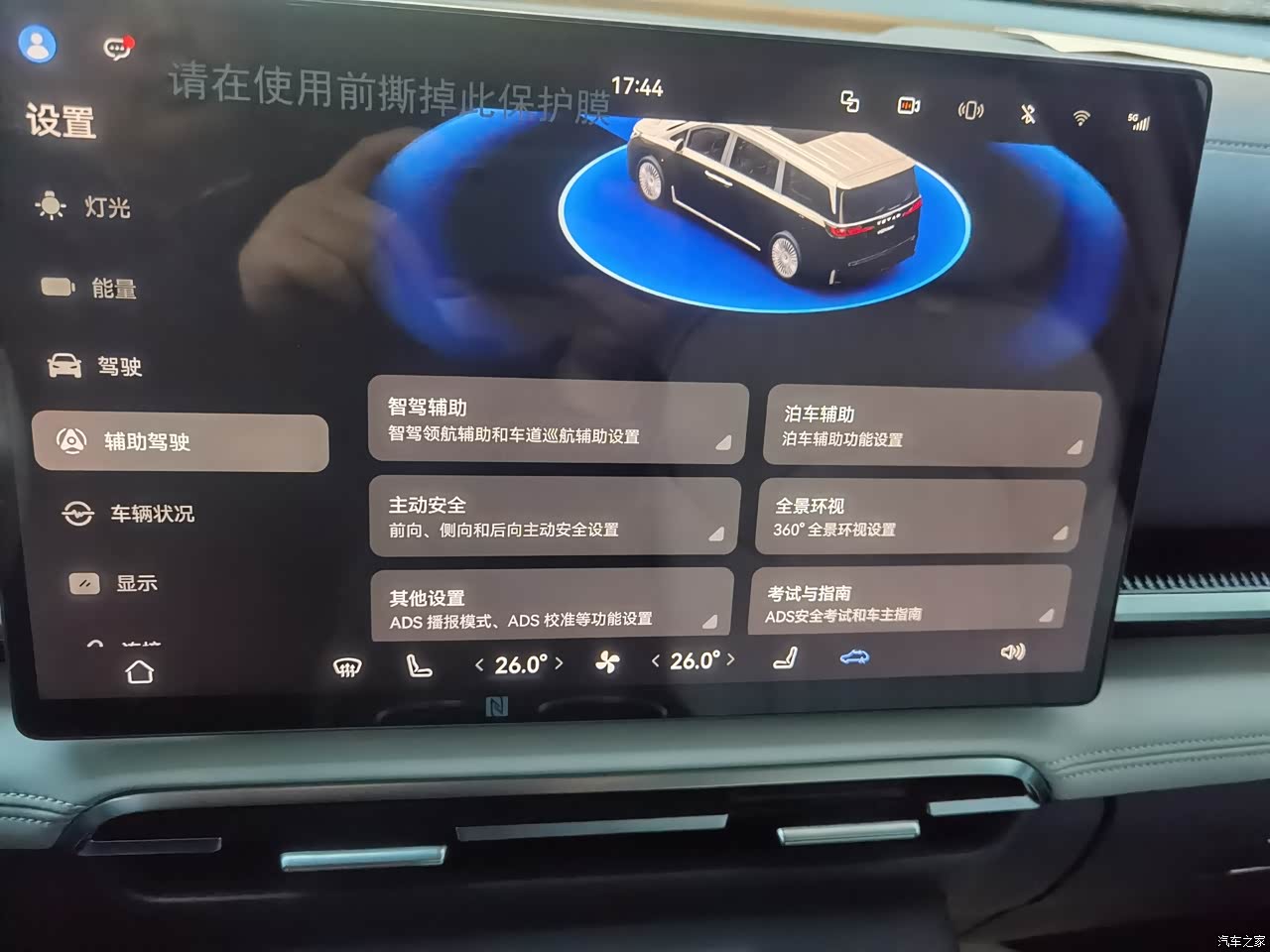 方向盘全是皮质包裹,支持多功能按键,是那种比较传统的物理按键,在保证安全驾驶的同时,可快速进行功能的调节。 梦想家中排有航空座椅、扶手操作屏幕调节座椅及冰箱,零重力模式让人眼前一亮;第三排可电动向前调节,提升了后备箱空间灵活利用率。车内材质按照购车时销售介绍:均采用欧盟婴儿亲肤认证面料,通过OEKO-TEX生态纺织品健康认证标准;实际触摸质感确实非常好,无任何味道。 车机系统上,搭载了Harmony OS系统,整体以简洁的设计风格为主,UI设计非常清晰简洁。有什么不懂的还能够呼唤“小艺小艺”代劳。