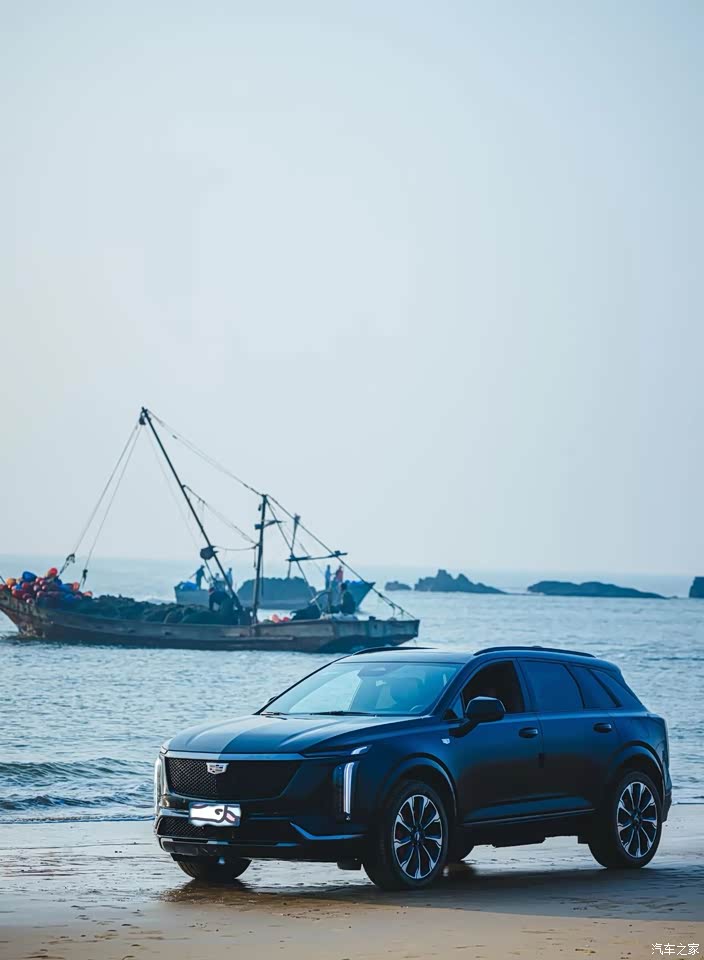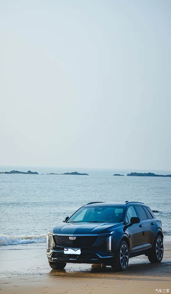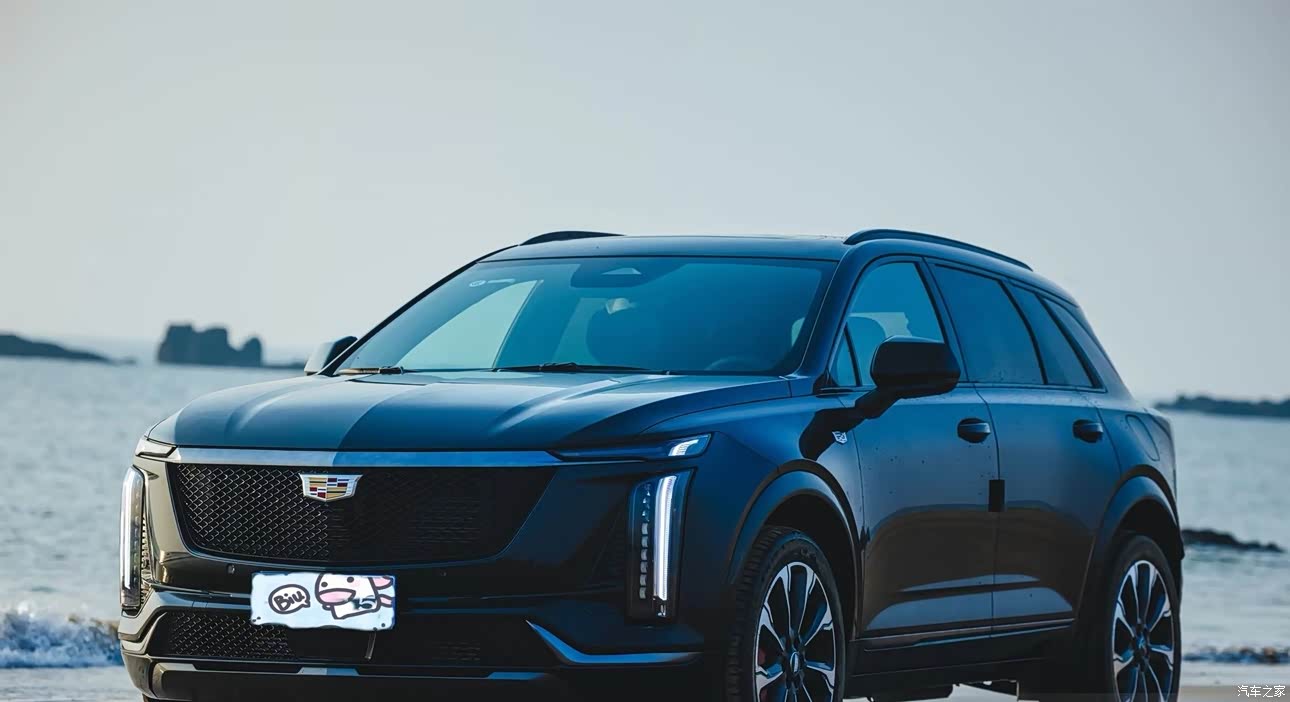 外观设计给人一种非常现代且稳重的视觉感受。前脸的进气格栅与两侧锐利的LED灯组相辅相成,呈现出一种充满力量感的设计风格,特别是凯迪拉克的车标镶嵌在中间,让整个车头显得威武而大气。