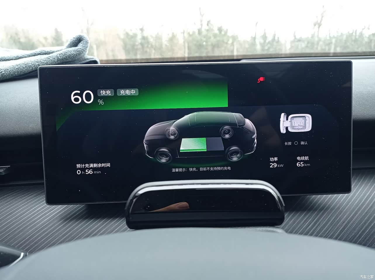 有快充,慢充两种充电方式,目前冬季快充 30-40 千瓦左右,40 分钟左右 20%-80%; 慢充习惯用随车 1.5 千瓦,10 小时左右充满;不开空调,表显 95km,能跑 95km,天气好的时候,几乎可以开到 100-105 公里左右!