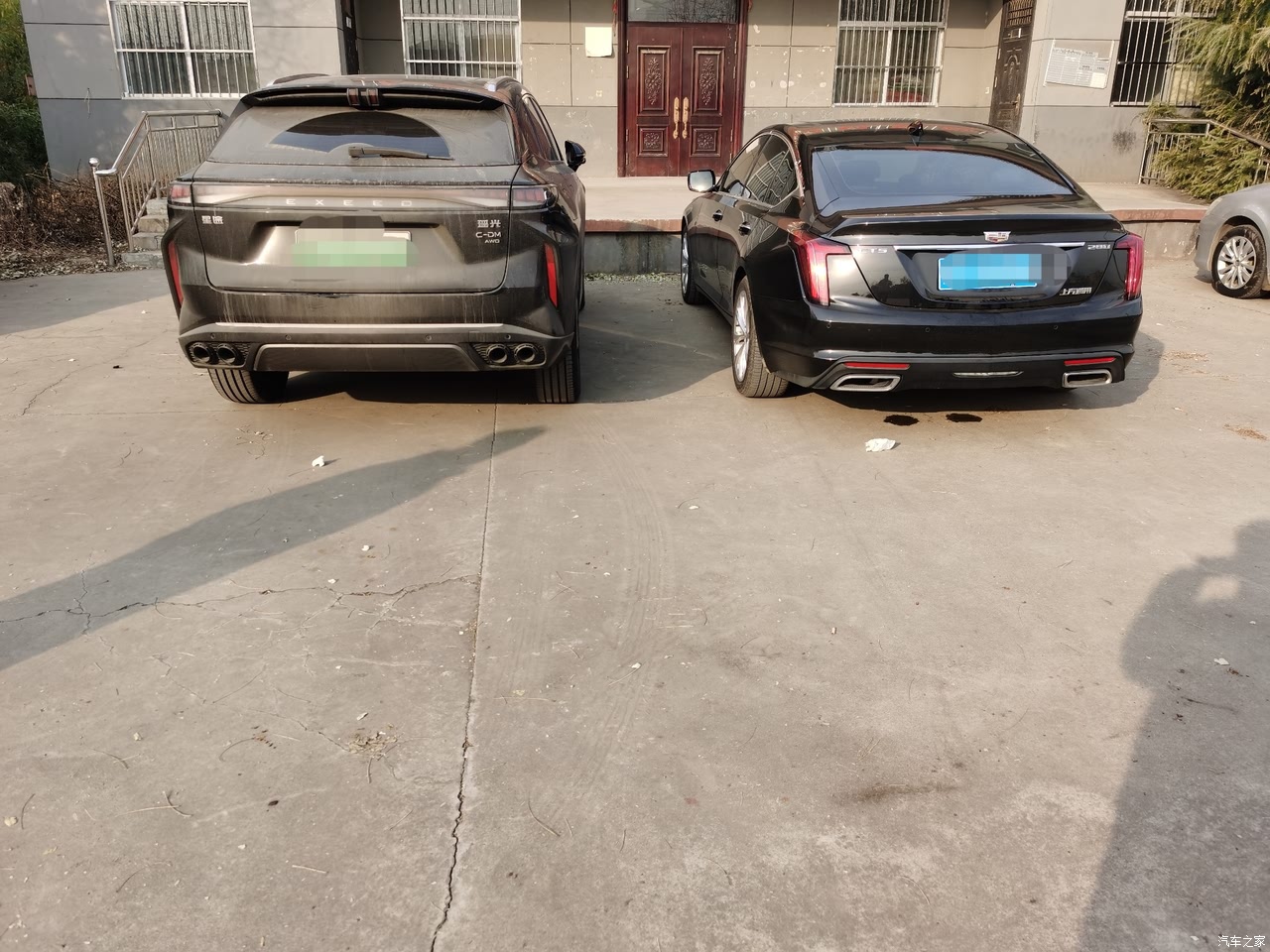 外观实车比照片好看,这辆车的车漆还是很亮,擦干净像镜面一样,侧面腰线很好看,显得车很长,车身整体看有厚重感和高级感,和凯迪拉克放一起气势也不输。