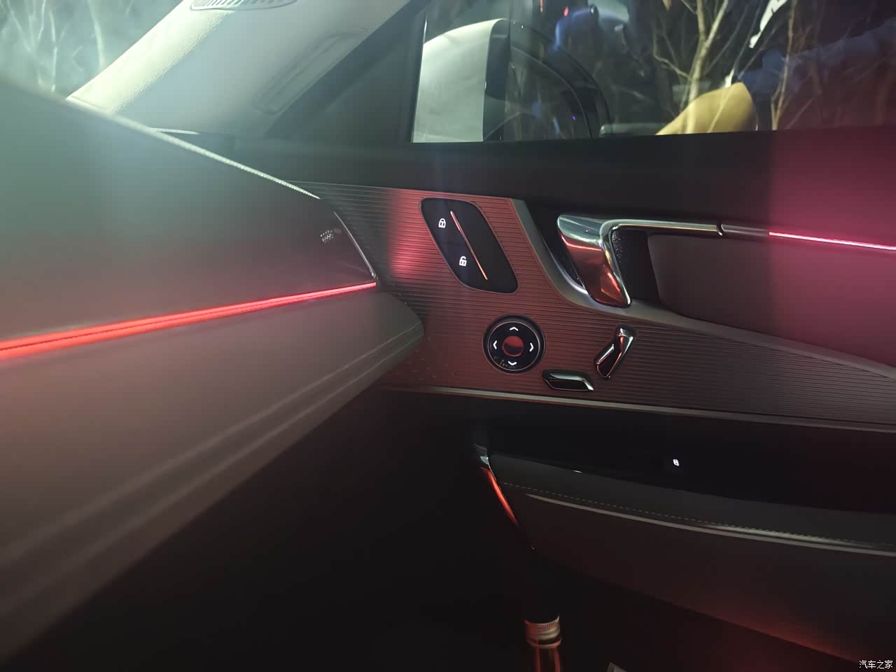 内饰这一块也是比较看好的一个点,高端大气上档次,氛围灯布满整个车内,而且颜色随便调,车机大屏够大够豪华,常用的空调部分也有单独的操作区域,并且是实体按键,这点太棒了!
