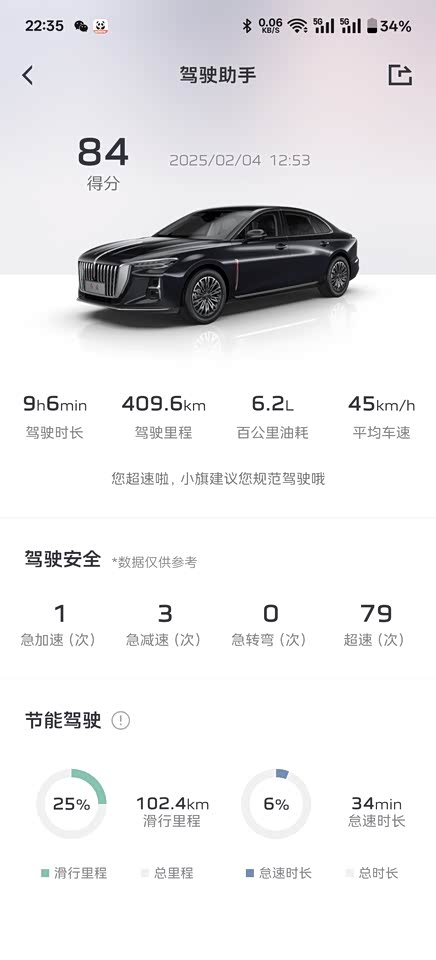 各位汽车之家的车友们,今天给大家分享一下我红旗H5的高速油耗使用感受。 一直以来,对于红旗H5这样的车型,我在油耗方面其实是有所期待但又有些担忧的。毕竟它的定位和车身尺寸摆在那,不过最近的一次高速行程,让我对它有了全新的认识。 出发前,我仔细检查了车辆的各项状态,确保轮胎气压正常、机油液位合适等,一切准备就绪后踏上了高速征程。 在高速行驶过程中,红旗H5的操控性让我印象深刻。方向盘指向精准,转向力度适中,长时间驾驶也不会觉得累。同时,悬挂系统调校得很出色,过一些小颠簸的时候,车内几乎感觉不到明显的震动,舒适性一流。 言归正传,说说油耗。这次高速行程总共行驶了850多公里,路况还算不错,车流量正常。到达目的地后,通过加油量和行驶里程的精确计算,百公里油耗大约是5.7L - 6.2L之间。这个数据真的让我很意外,原本以为会在7L往上走呢。 我分析了一下,能有这样优秀的油耗表现,一方面得益于红旗H5搭载的发动机与变速箱的完美匹配。在高速上,变速箱换挡平顺,发动机转速能保持在一个合理的区间,使得燃油利用率大大提高。另一方面,车辆的风阻系数设计得比较低,高速行驶时减少了空气阻力,也为降低油耗做出了贡献。 而且,红旗H5的智能辅助驾驶系统在高速上也帮了大忙。比如自适应巡航和车道保持功能,让我可以更轻松地驾驶,不用频繁地踩刹车和油门,这也在一定程度上避免了不必要的油耗增加。 总体而言,经过这次高速驾驶体验,红旗H5在油耗方面的表现让我非常满意。它不仅展现了强大的综合实力,更在燃油经济性上给了我一个大大的惊喜。希望我的分享能给各位对红旗H5感兴趣的车友一些参考,大家要是有不同的看法或者驾驶体验,欢迎在评论区留言交流!