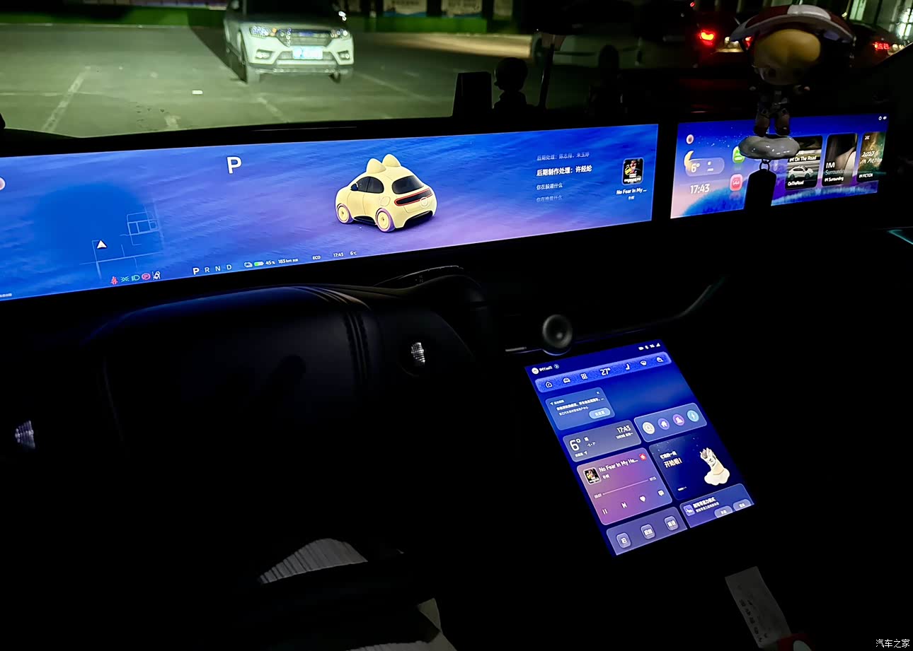 内饰我也挺满意的,座椅又大又软,包裹性很好,久坐也不累。副驾驶的零重力座椅特别适合休息,把座椅放倒,躺上去就像在家里的躺椅上一样惬意。不过座椅按摩力度有点小,感觉不太明显。车内的大屏幕显示很清晰,操作也很流畅,各种功能一目了然。