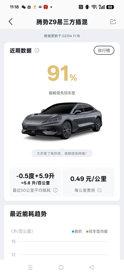由于有比亚迪DMi5.0技术支持,市区内200km的纯电续航,加上满油满电的 1100km,我觉得 非常适合我。