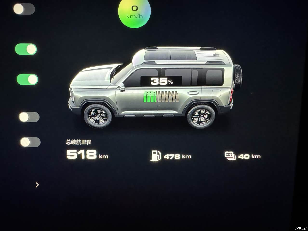 满油表显845,满电表显145,加起来990,实际上不跑高速的话能跑到900➕,跑高速的话如果跑100能跑到接近800,跑120的话只能跑600多。说实话现在混动车续航不过千有点说不过去,我看了底盘也还有地方,油箱大一点的话续航过千就舒服了,出去玩能少加油,穿越也不用带油桶。