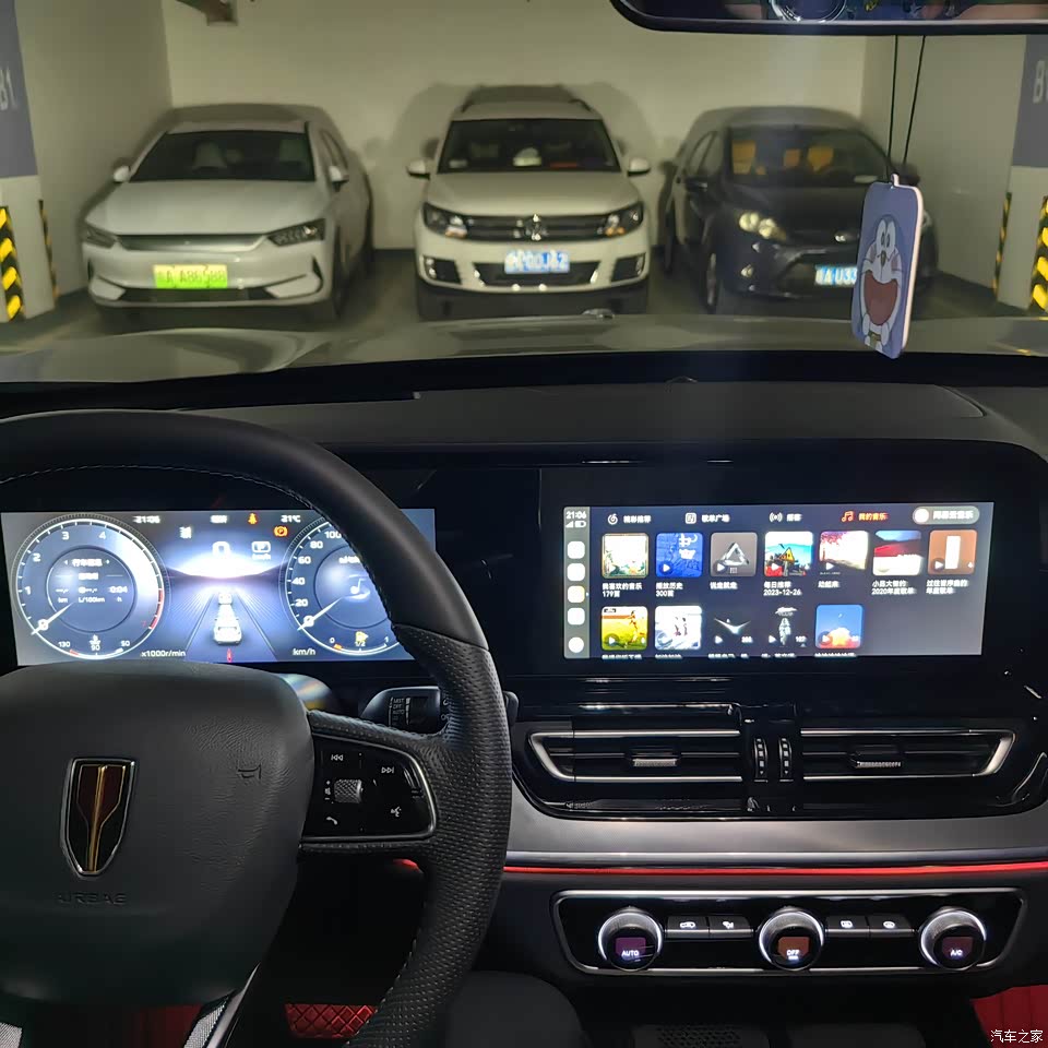 车机是那种仪表盘和车机双联屏,看着是真唬人,哈哈哈哈,实际上用着也还好,我上车就实现车机互联,我都是用手机上的导航和音乐软件,用着还是挺舒服的,只要手机不卡车机就不后悔卡,车机本身的功能除了调节配置和样式,用的还是比较少的。
