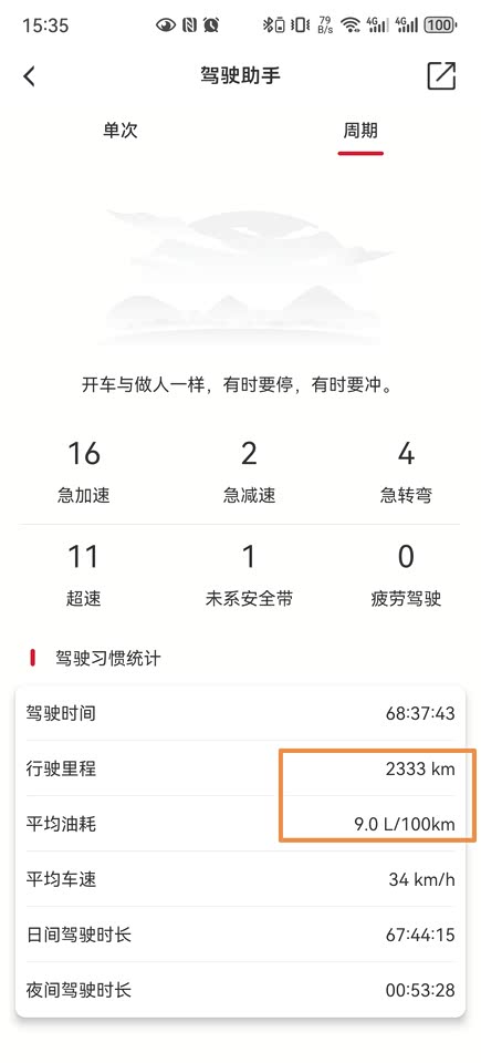 这里面是全部的里程对应的综合油耗,平时高速和市区对半开,差不多能接受