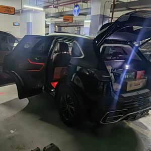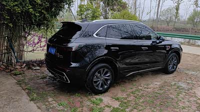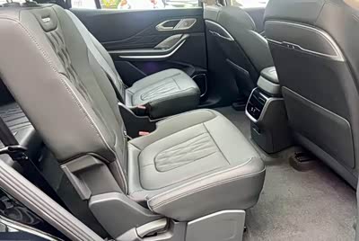 再看侧面线条,4米8的车长被衬得特别舒展。从翼子板延伸到尾灯的高腰线很凌厉,微微上扬的走势让车身有种往前冲的动感,完全没有大型SUV的笨拙感。我选的20英寸熏黑轮毂,配上红色卡钳,细节里全是运动气息。周末带家人去景区,停在路边时,同行的大叔还绕着看了圈,说“这侧面线条真顺,比同价位的合资车有气场”。 最难得的是这些设计不只是花架子,悬浮车顶让后排头部空间更宽敞,尾灯的亮度也让夜间行车更安全。开着它出门,不管是日常通勤还是全家出游,都既有面子又舒服。