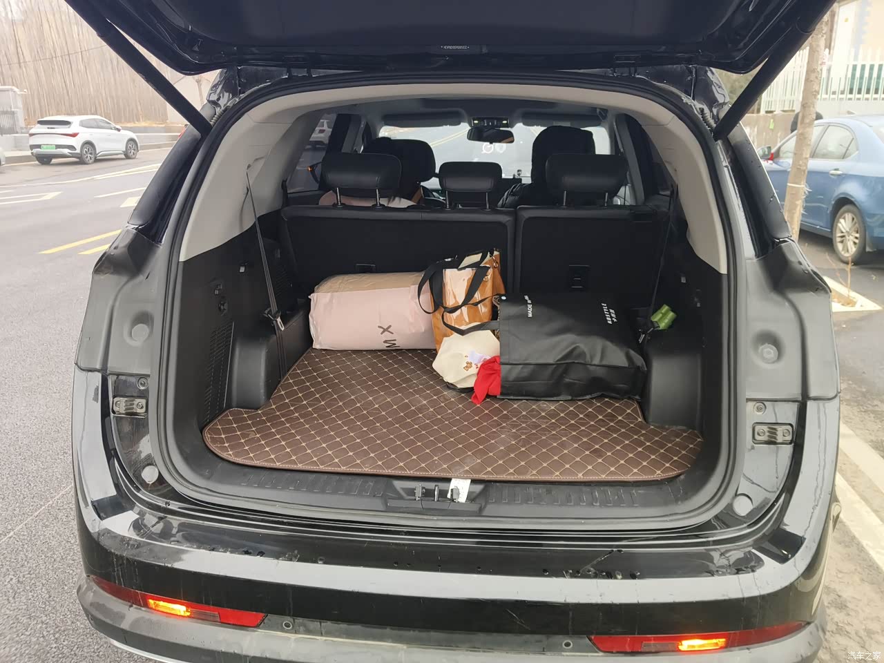 空间表现 乘坐宽敞:车内空间宽敞,7座布局下,第三排也能轻松坐大人,第二排支持靠背大角度调整和前后调节。 - 储物能力强:后备厢容积达1634L,可满足出行装载需求,后排座椅放倒后能秒变平整大床,