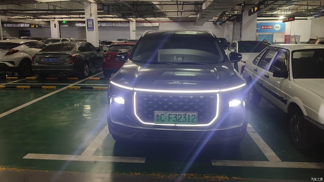 外观设计 大气时尚:车身线条流畅,大尺寸进气格栅搭配点阵式结构和镀铬装饰,分体式LED大灯组与贯穿式灯带,整体造型极具辨识度。 -视觉效果出色:20英寸大轮毂搭配255/45 R20的大尺寸轮胎,增强稳定性的同时,让车辆更显霸气。