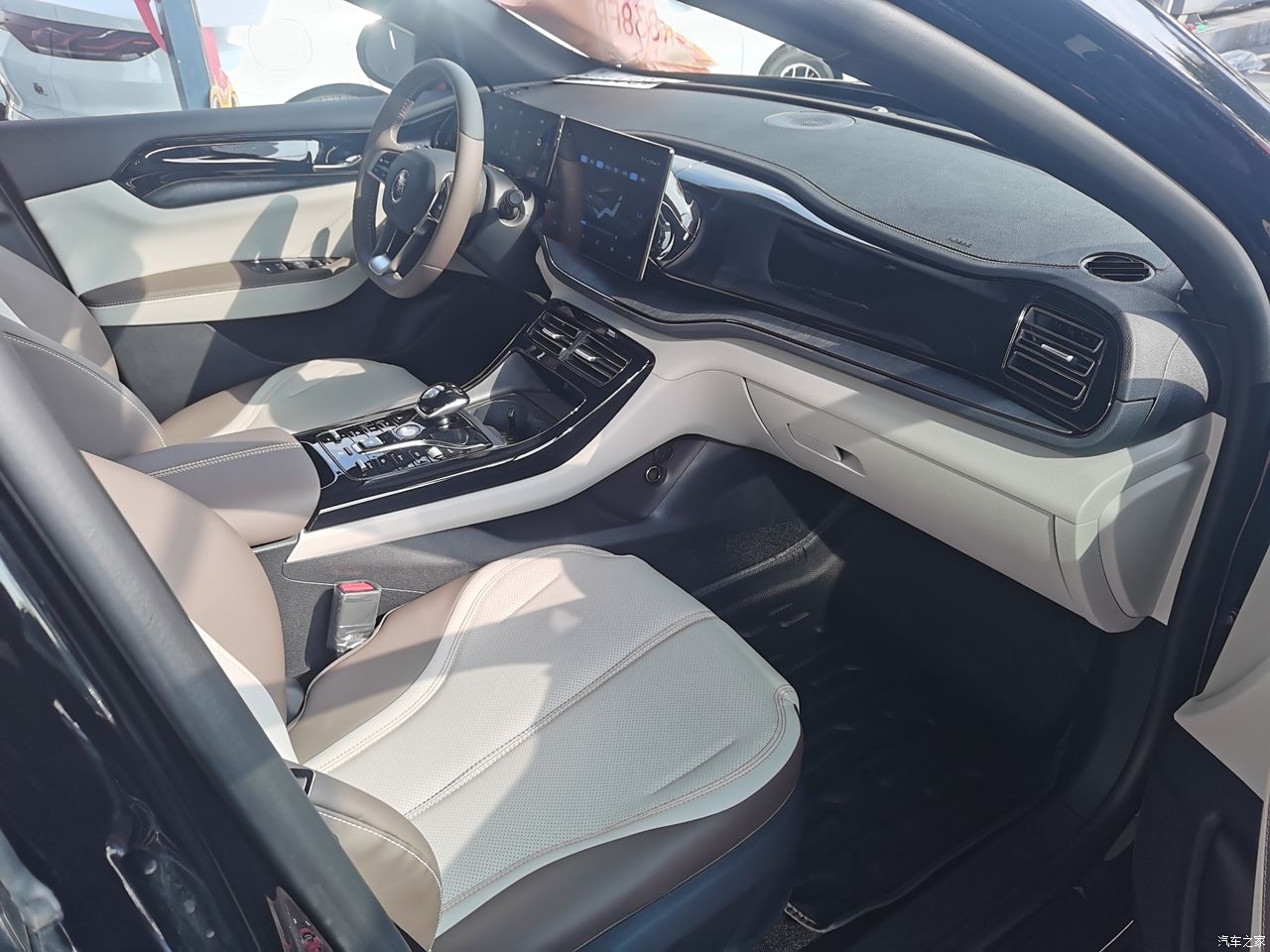 内饰设计看着挺大气的,内部的按钮布局也是非常简约合理,整体细节做的很好,特别是中控以及座椅这方面,手感是特别好的,并且材质也不是很差,颜色搭配挺协调的,而且这个颜色也比较耐脏的。
