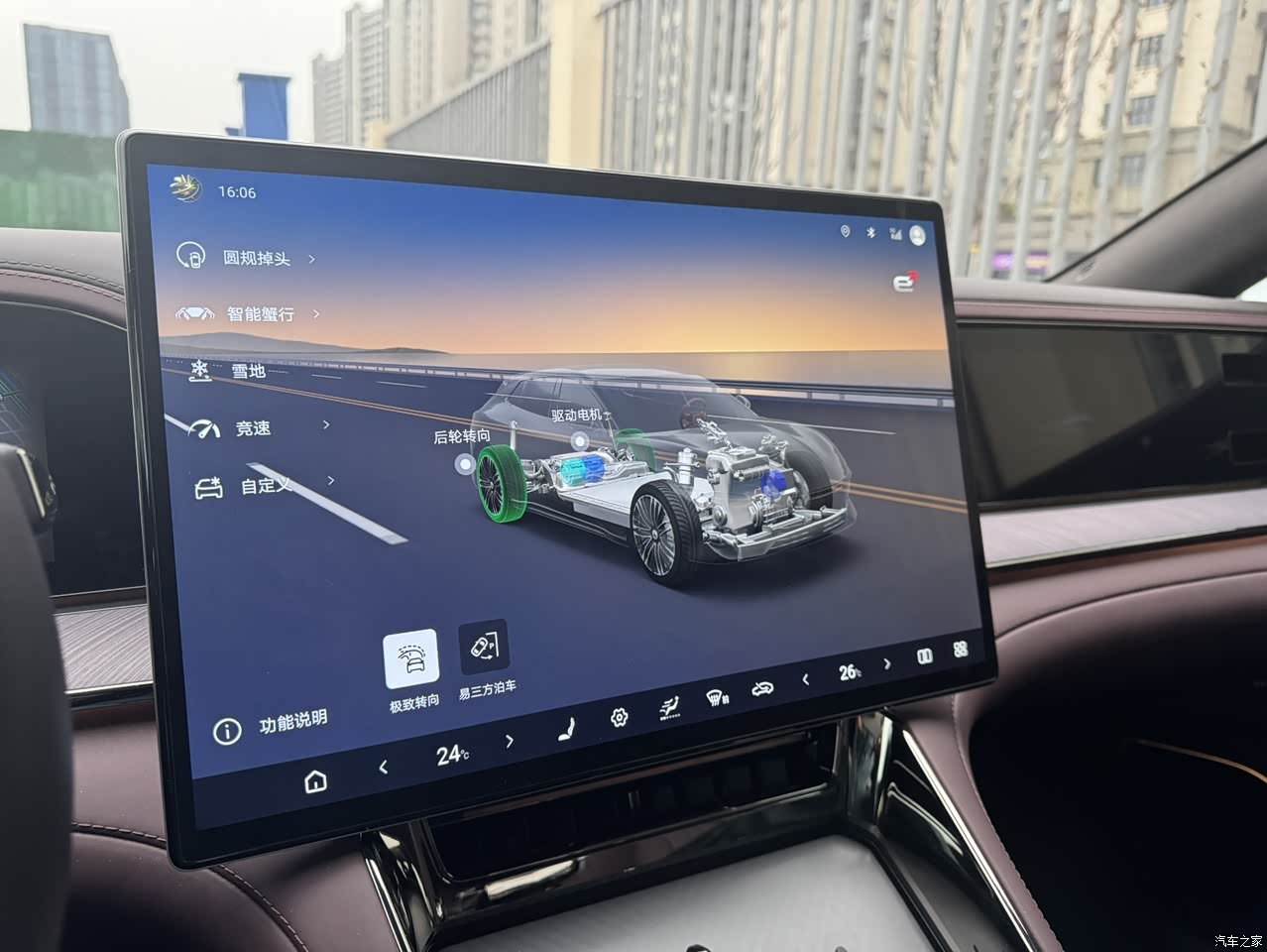 除了智驾和一些娱乐功能之外,最大的智能就是这款车携带的易三方,通过对各个电机的独立控制,这款车可以实现很多非常有意思的功能,比如圆规掉头,蟹行模式,极限转向等等,实用性很高。