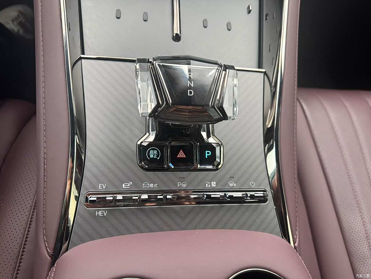 很精致很豪华的感觉,上车第一感觉就是豪车,很多配置和功能堆起来感官上就非常棒,二排空调出风口都有屏幕可以控制。包括档位边上的这些功能物理按键,整个搭配起来很大气。 没有选浅色的内饰,浅色感觉豪华感没有这个红色强烈,而且不耐脏,要经常打理,这个就很省心。