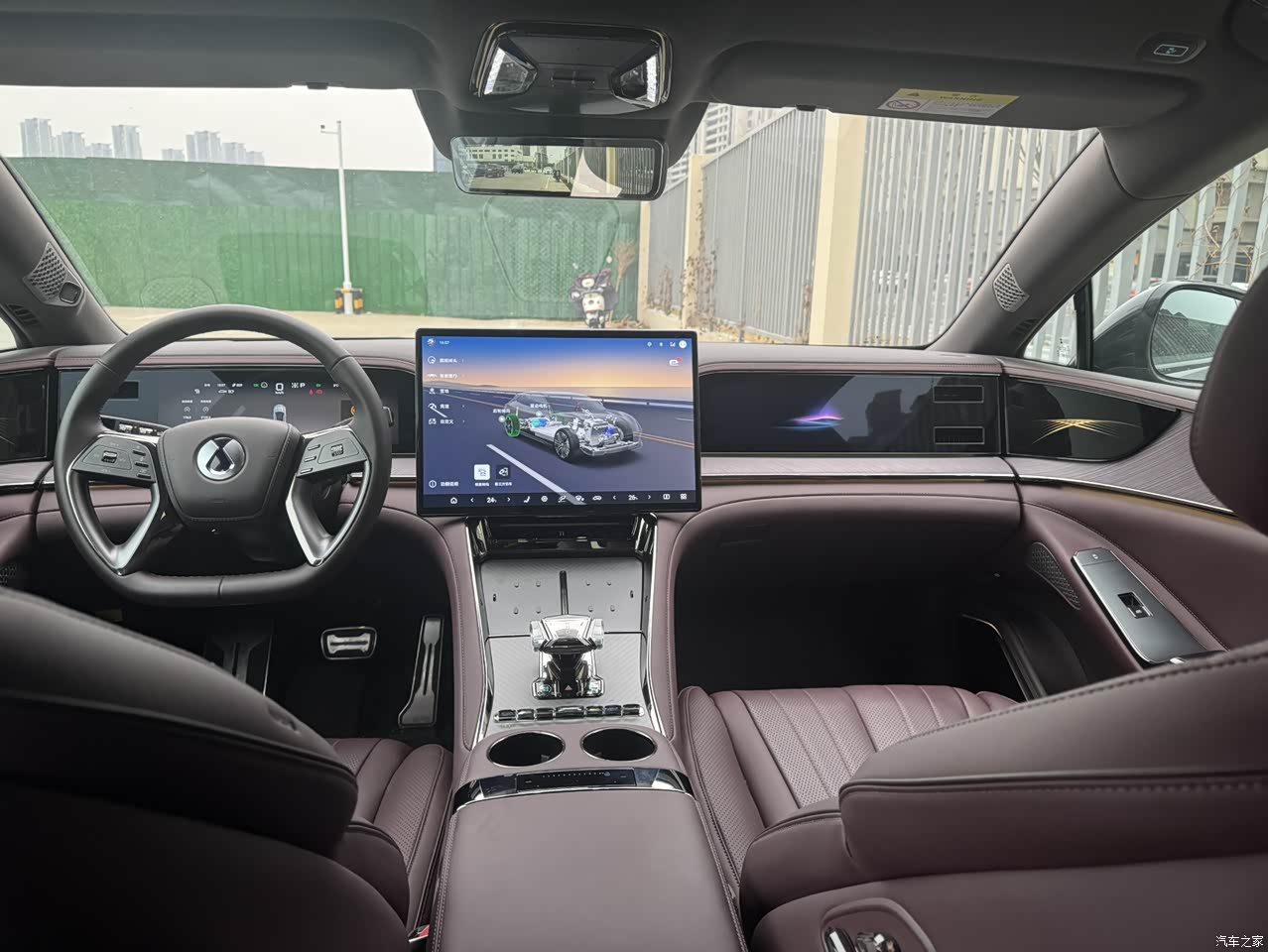 三个电机和一个2.0T排量的发动机,拖着这个两三吨重的大家伙跑起来也是非常快的。又快又稳,云辇预瞄让整个车的底盘异常舒适。油门有一个鸡血开关,猜到底的时候发动机会介入,发动机和电机同时发力,提速非常猛。