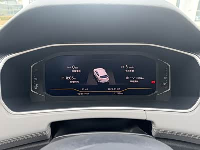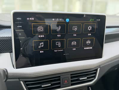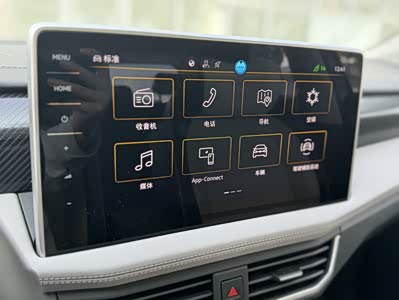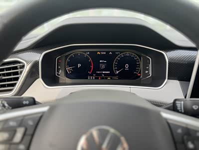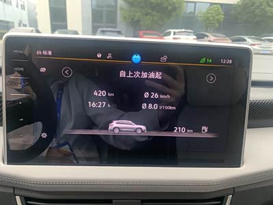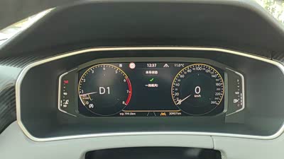 在配置方面也中规中矩,像中控显示屏,尺寸不算大但比以往大众的要大,界面简洁直观,提供了导航、娱乐、车辆设置等多种功能, 全液晶仪表盘,显示清晰内容也全面,还有一键启动、电动后备箱,这些也都配置上了。