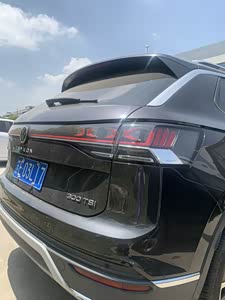 探岳的外观怎么说呢,沉稳性吧,大体上也是大众的家族元素,整体展现出稳健的特质,前脸上是宽大的横向镀铬进气格栅,两侧LED大灯组很自然地衔接,特别能感受到宽阔又稳重的观感,LED日间行车灯点亮时很特别,也增强了车辆的辨识度,整体很有点越野气息。 侧面线条看上去很简洁流畅又不失硬感,车顶线条和装饰条向下倾斜,很有运动的姿态,一条鲜明的腰线从前翼子板一直延伸到尾灯,让车身看起来更修长,车窗上方有镀铬饰条,也是提升了侧面的质感,车门下缘还有镀铬的防擦条,即美观大气又能防止刮蹭,整个侧面还是很有运动感的。 车尾部分嘛,总体简洁又饱满,尾灯点亮后与前大灯遥相呼应,后面保险杠加了银色装饰件,假的双边共单出的排气布局看上去很历害的样子,哈哈,就是有点窄了,而且也就是个装饰,再说我这辆也是300TSI的,1.5T的动力在路上也只有吃灰的份哈哈